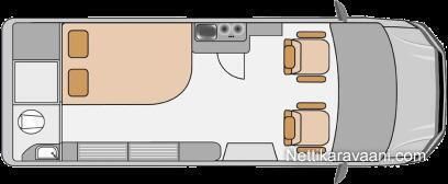 Vaihteisto: Automaatti Polttoaine: Diesel Vetotapa: Etuveto Leveys: 219 cm Pituus: 684 cm Matkustajat: 2 Kokonaismassa: 3 500 kg Oma massa: 3 120 kg Makuupaikat: 2 Ajokortti: B Lämmitys: Ilmakeskuslämmitys
