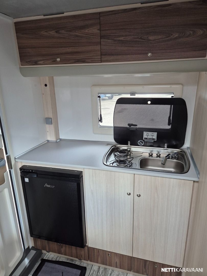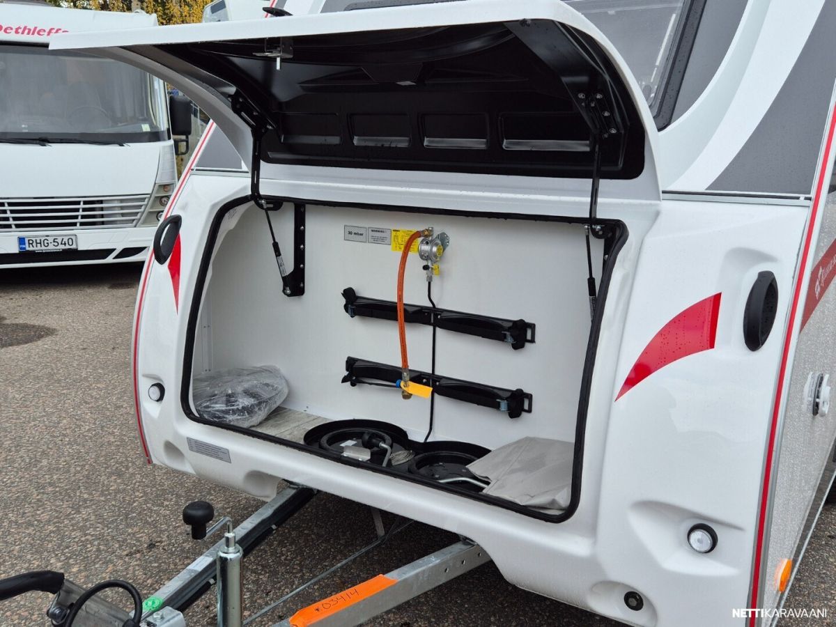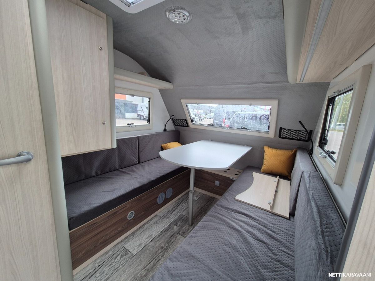 Leveys: 205 cm Pituus: 481 cm Kokonaismassa: 750 kg Oma massa: 700 kg Makuupaikat: 3 Lämmitys: Ei määritelty