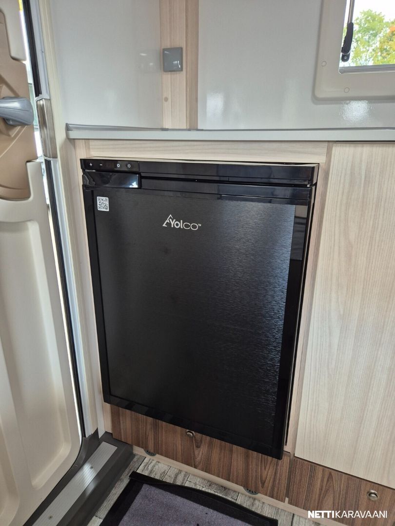 Jääkaappi, Kasetti WC, Kasettiverhot, Liesi, Pesuallas, Erikoisvanteet, Lattialämmitys, Trumatic, Tukijalat