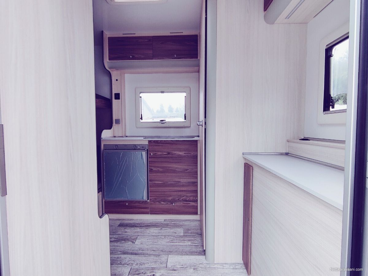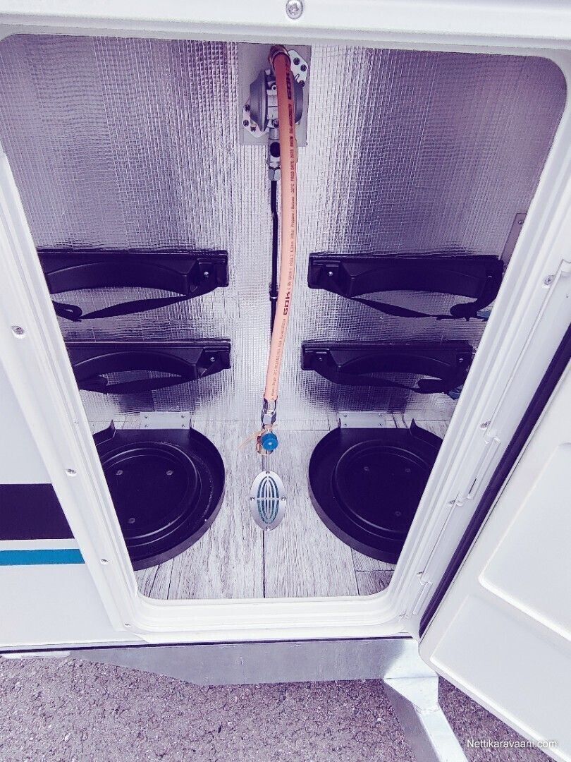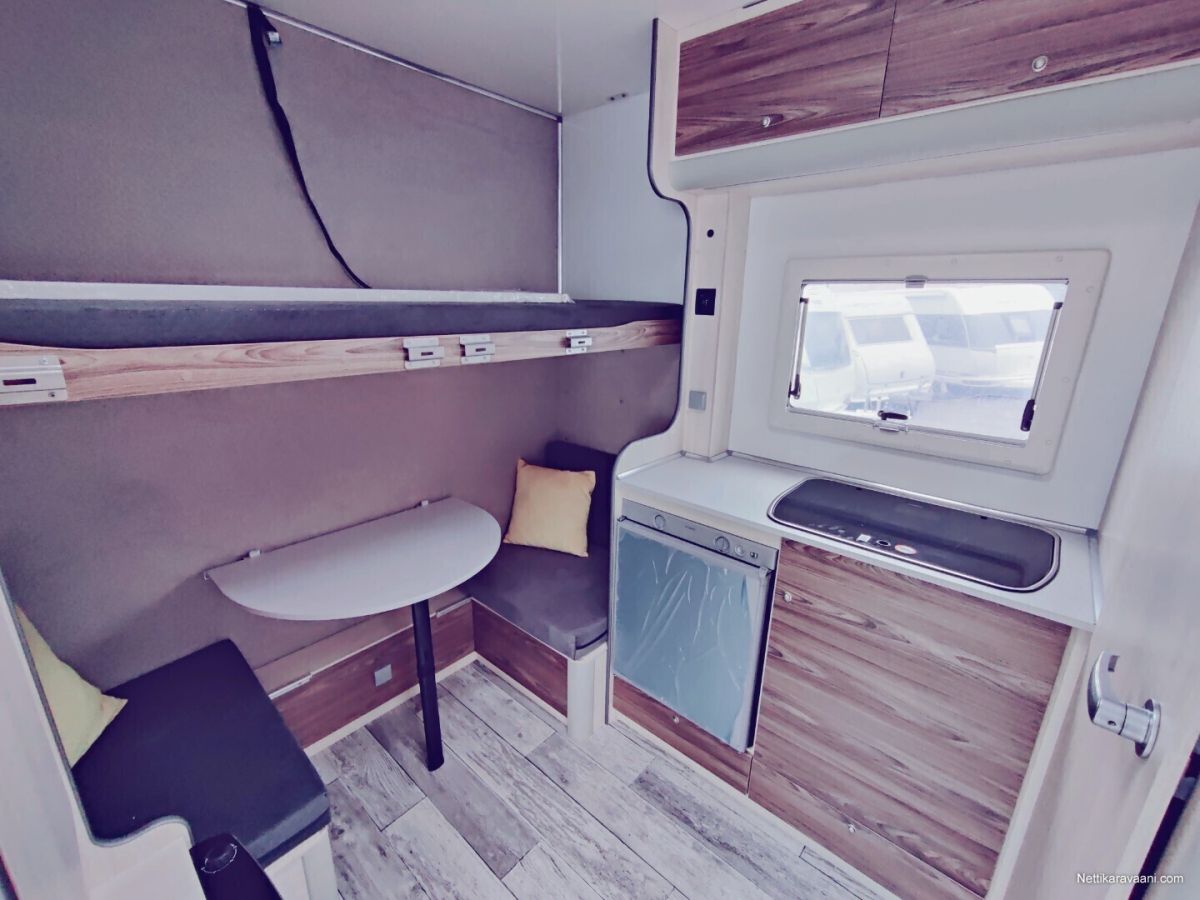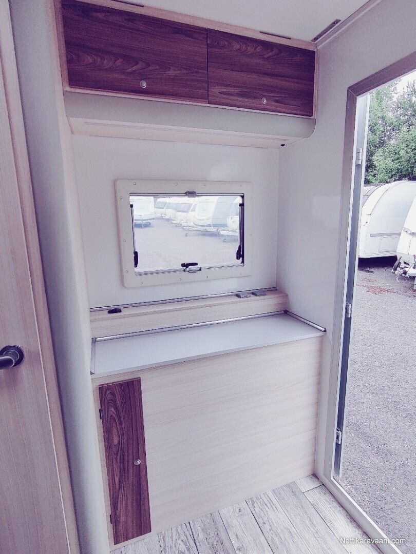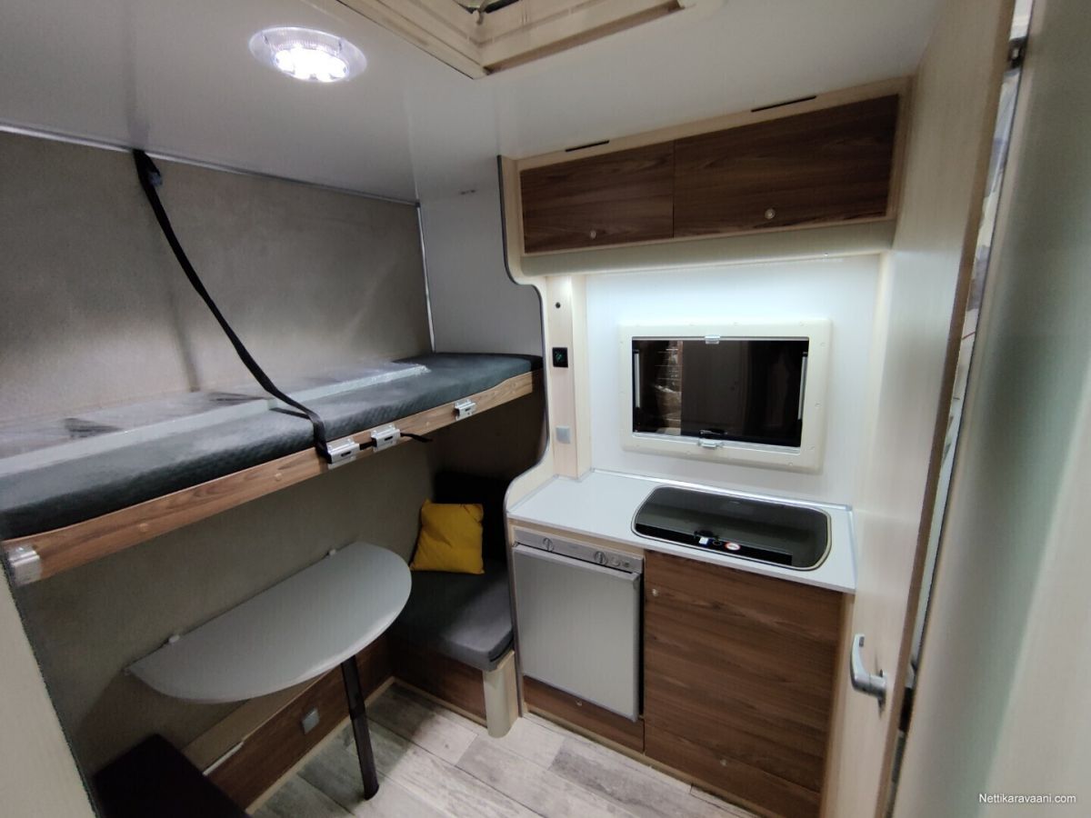 Hinta sisältää alvn 25,5,% Vaunuun asennettu markiisi ja siihen on myös etutelttasarja. Asuttu noin 20 yötä eli lähes uudenveroinen! Vakiovarusteet -oleskelutila (250x200x210cm) -käyntiovi leveys 70cm (kahva lukko, metallinen oven pidike) -kattoikkuna Dometic (40x40cm) -sivuikkuna (700x500mm) + kasettiverho huonekalut: vaatekaappi, kaasukaappi, pöytäryhmä/ sänky, yläsänky + tikkaat keittiö: lavuaarikaappi, jääkaappi Dometic 60 l, kaasuliesi kahdella polttimella Dometic, vesi kanisterit 2x 20l, lämminvesi Truma Therme 5 l WC : Thetford C-262 kääntyvä istuin, lavuaari, suihkuverho, allas, avattava ikkuna peili,2 lämmitin: nestekaasu pistelämmitin Truma S 3004, kaasupullojen säilytyskaappi (2x 11kg) sähkö: syöttö 230V, LED valaistus, sähkörasiat, USB, akku 50Ah, Varasto tila (297x200x210cm) -kuormasidontalenkit upotettu lattiaan 6 kpl -seinälistat 2 x 2