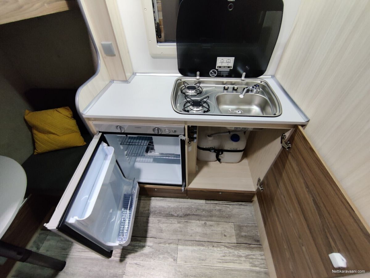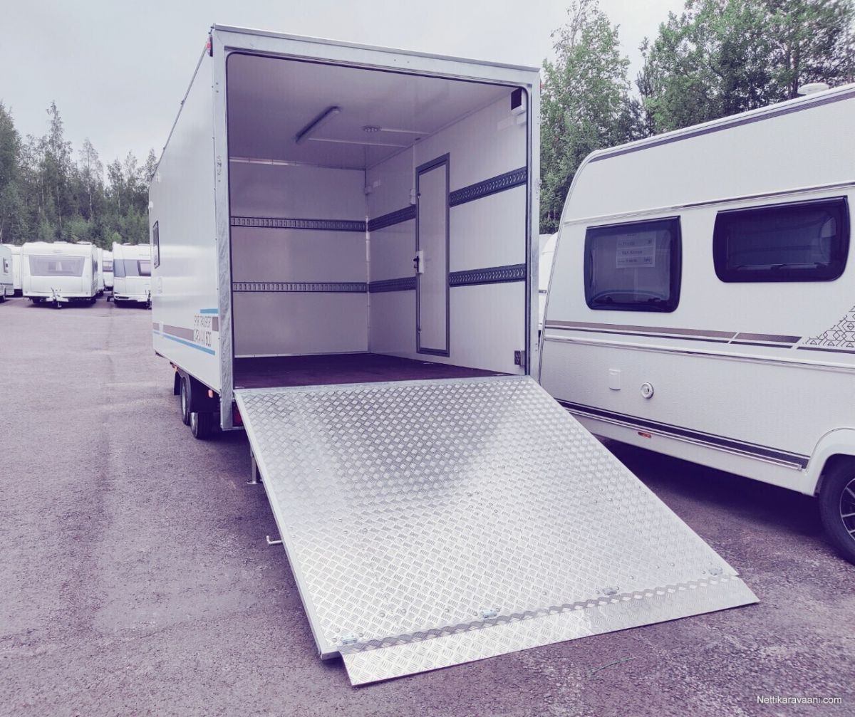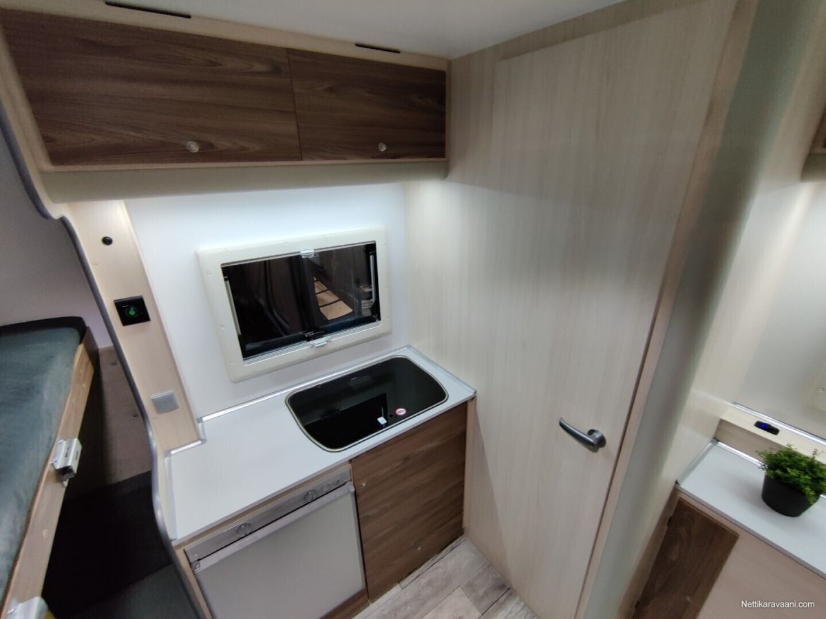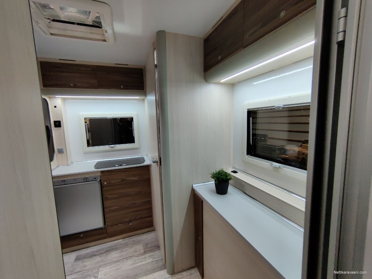 Hinta sisältää alvn 25,5,% Vaunuun asennettu markiisi ja siihen on myös etutelttasarja. Asuttu noin 20 yötä eli lähes uudenveroinen! Vakiovarusteet -oleskelutila (250x200x210cm) -käyntiovi leveys 70cm (kahva lukko, metallinen oven pidike) -kattoikkuna Dometic (40x40cm) -sivuikkuna (700x500mm) + kasettiverho huonekalut: vaatekaappi, kaasukaappi, pöytäryhmä/ sänky, yläsänky + tikkaat keittiö: lavuaarikaappi, jääkaappi Dometic 60 l, kaasuliesi kahdella polttimella Dometic, vesi kanisterit 2x 20l, lämminvesi Truma Therme 5 l WC : Thetford C-262 kääntyvä istuin, lavuaari, suihkuverho, allas, avattava ikkuna peili,2 lämmitin: nestekaasu pistelämmitin Truma S 3004, kaasupullojen säilytyskaappi (2x 11kg) sähkö: syöttö 230V, LED valaistus, sähkörasiat, USB, akku 50Ah, Varasto tila (297x200x210cm) -kuormasidontalenkit upotettu lattiaan 6 kpl -seinälistat 2 x 2