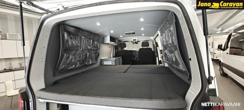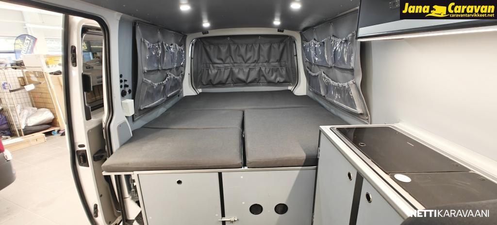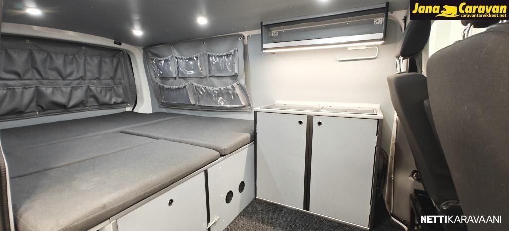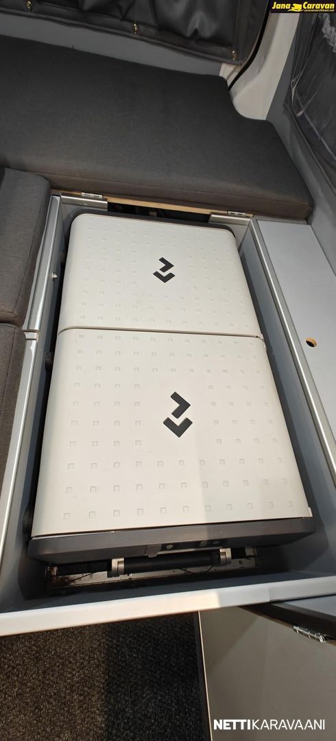 Webasto ilmalämmitys asuinosassa, ilmanvaihto, aurinkopaneelit, järeä invertteri ja tupla-akut BlueSmart-latauksella.