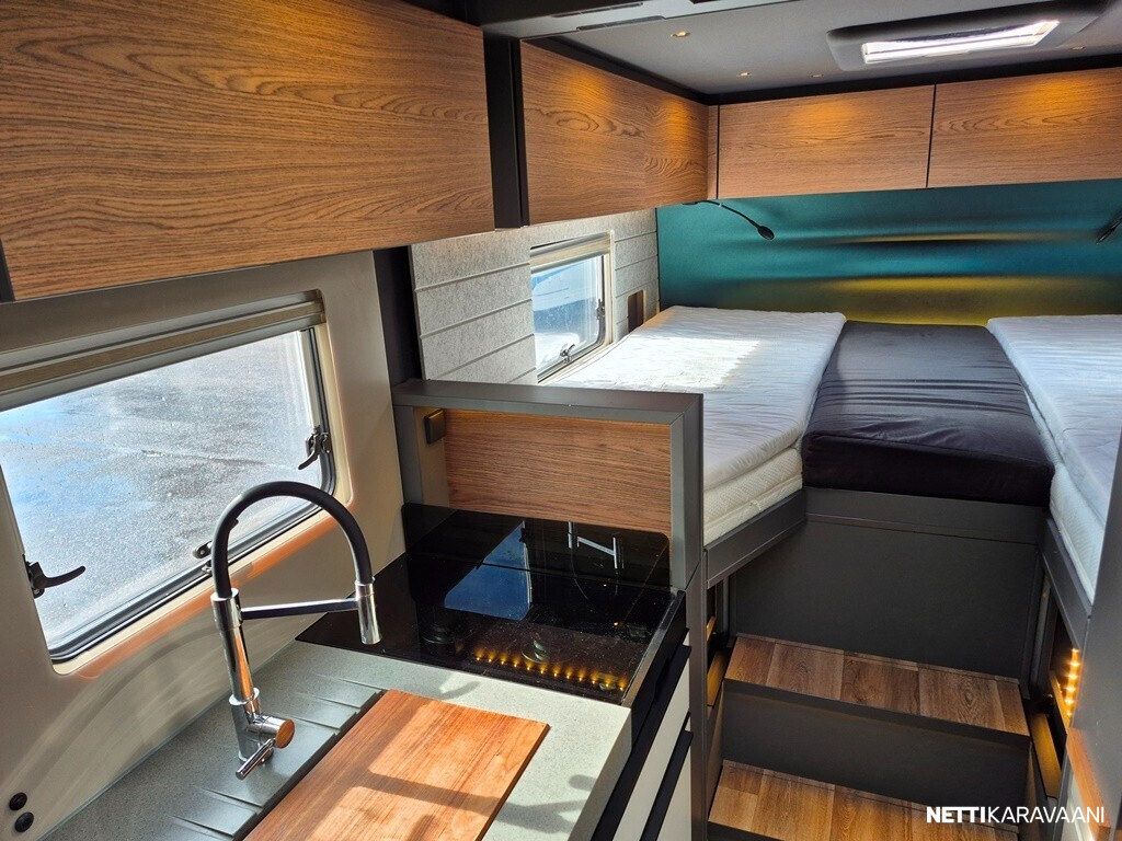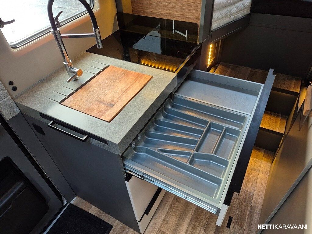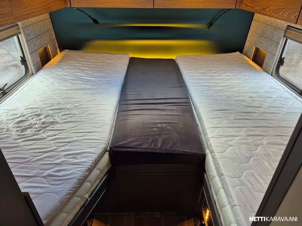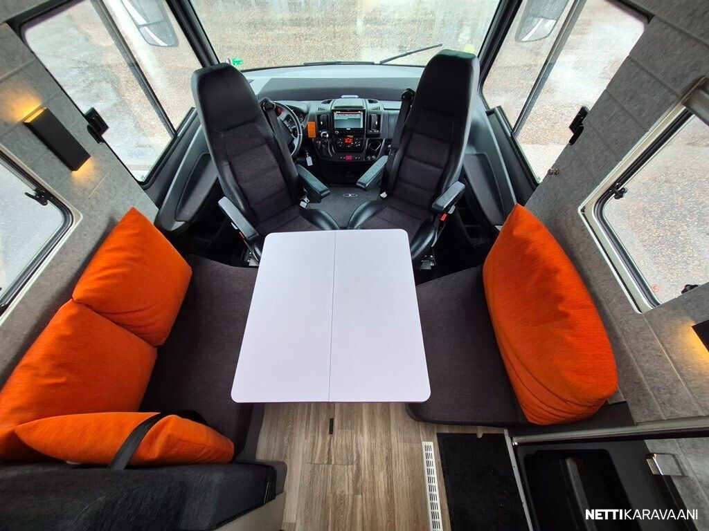 Ajotietokone, Jääkaappi, Kasetti WC, Kasettiverhot, Keskuslukitus: Kaukosäätöinen, Liesi, Lämminvesiboileri, Markiisi, Navigaattori, Ohjaustehostin, Pesuallas, Pysäköintikamera, Sisätilanpistoke, Suihku, Sähköpeilit, TV-antenni tai lautasantenni, Vakionopeudensäädin, ABS-jarrut, Airbag, Käynnistyksenesto, Sumuvalot, Alde, Erikoisvanteet, Kattoluukku, Sähköpatruuna, Sähkörappu, Turbo