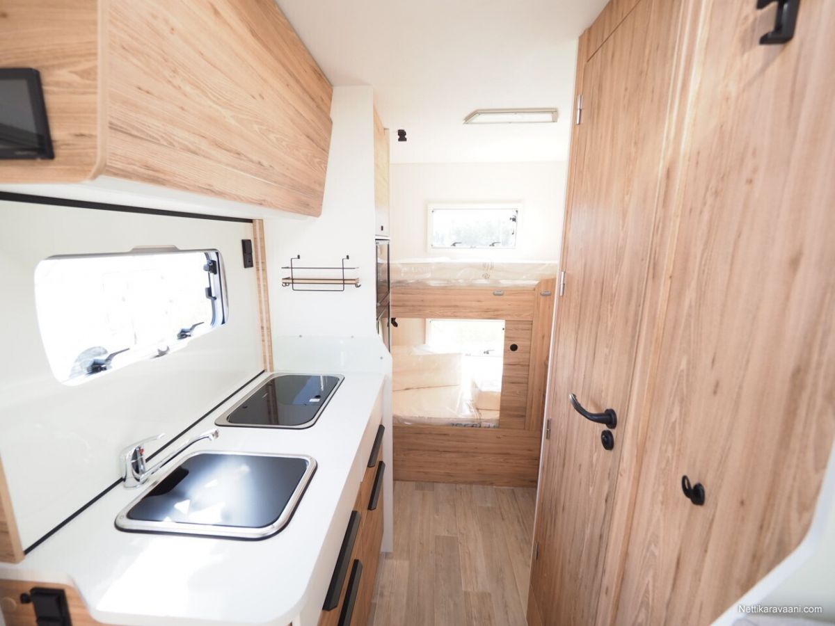 Ajotietokone, Ilmastointi: Manuaalinen, Jääkaappi, Kasetti WC, Kasettiverhot, Mikroaaltouuni, Ohjaustehostin, Pakastelokero, Pysäköintikamera, Suihku, Sähkökäyttöiset ikkunat, Sähköpeilit, Vakionopeudensäädin, ABS-jarrut, Airbag, Aurinkopaneeli, Erikoisvanteet, Eristetty harmaavesisäiliö, Kattoluukku, Sähköpatruuna, Trumatic, Turbo, Keskuslukitus: Ilman kaukosäädintä, Lämminvesiboileri, Pesuallas, Käynnistyksenesto, Huoltokirja