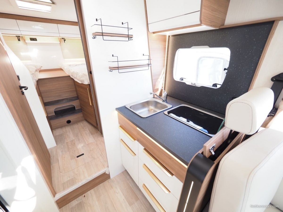 Ajotietokone, Jääkaappi, Kasetti WC, Kasettiverhot, Keskuslukitus: Kaukosäätöinen, Liesi, Lämminvesiboileri, Navigaattori, Ohjaustehostin, Pakastelokero, Pesuallas, Pysäköintikamera, Suihku, Vakionopeudensäädin, ABS-jarrut, Airbag, Käynnistyksenesto, Erikoisvanteet, Eristetty harmaavesisäiliö, Huoltokirja, Kattoluukku, Sähköpatruuna, Sähkörappu, Trumatic, Turbo, Mikroaaltouuni