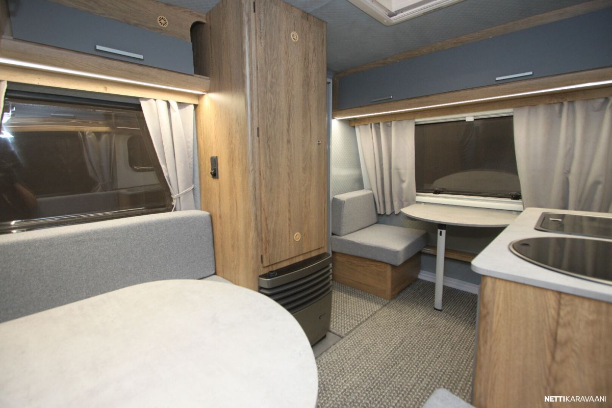 Kokonaispituus vain 4,5 metriä ja leveyttä 2,05m joten tämän mukavaan vetämiseen et tarvitse isoa maasturia vaan vaunu seuraa kevyesti myös pienempääkin autoa.