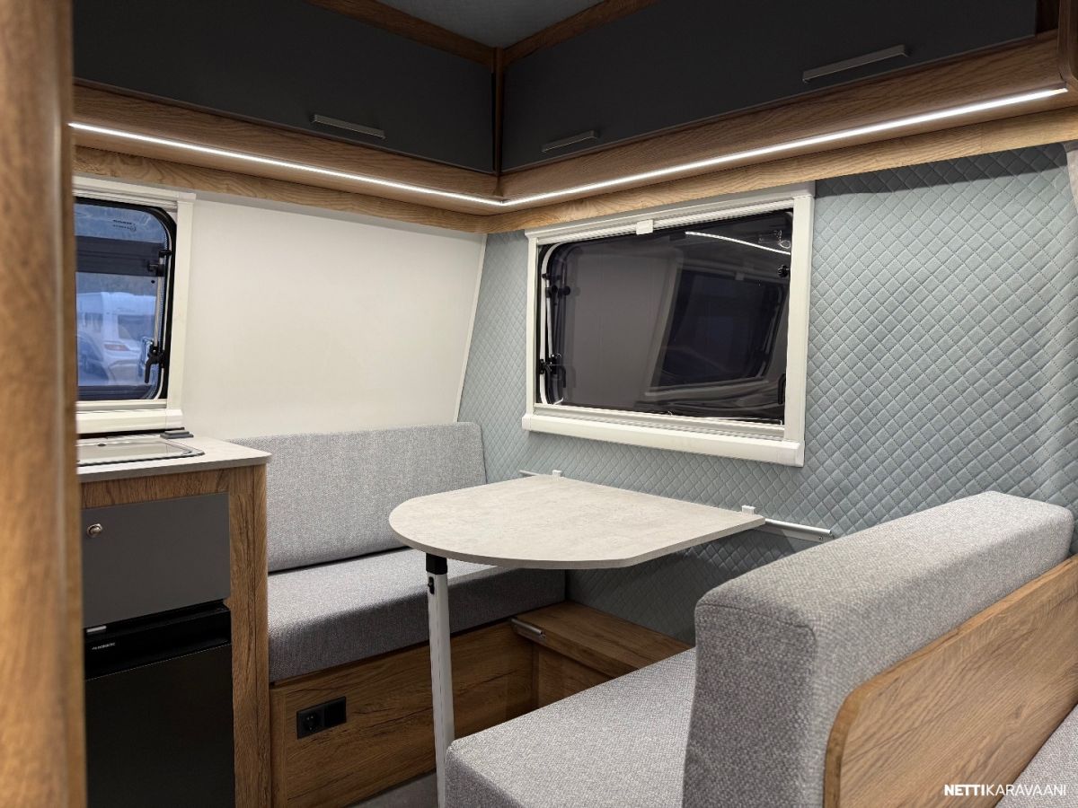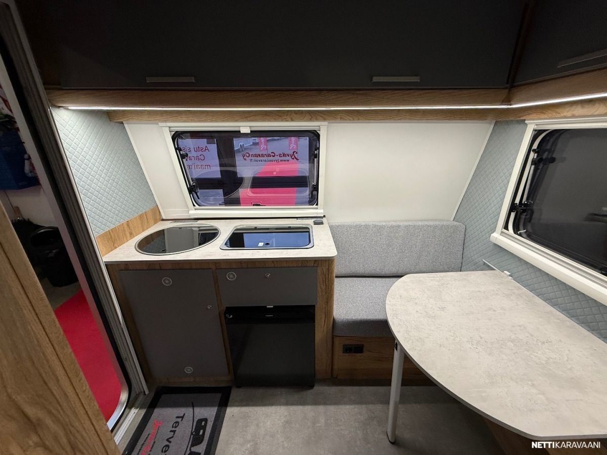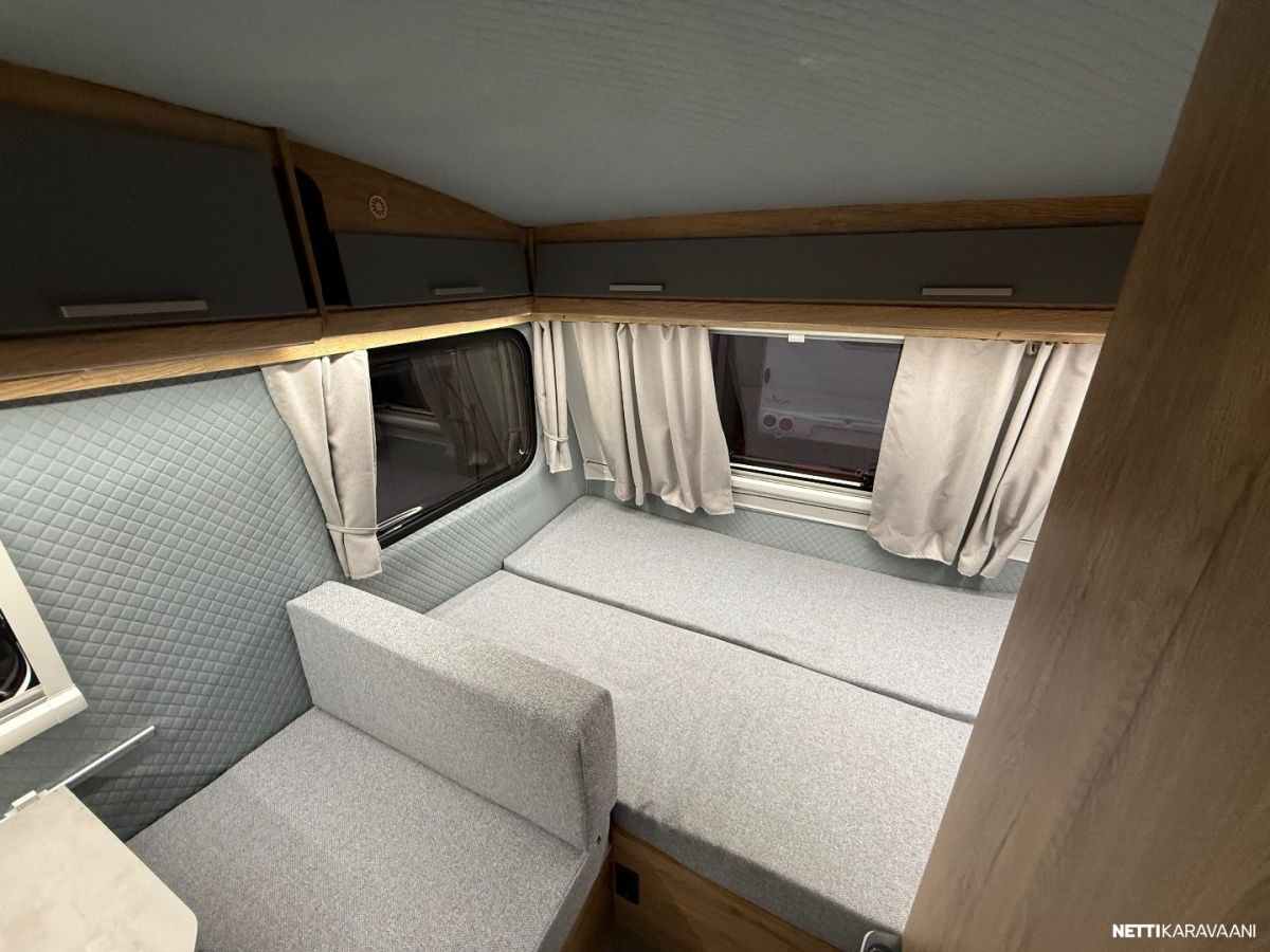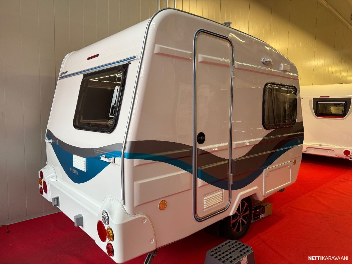Suosittu ja perinteinen Poksi 126. Tässä NN-mallissa on kiinteä parivuode. Tämän lisäksi pöytäryhmästä voidaan tehdä lisäpeti. Katsastusvapaa ja saa ajaa 100km/h.