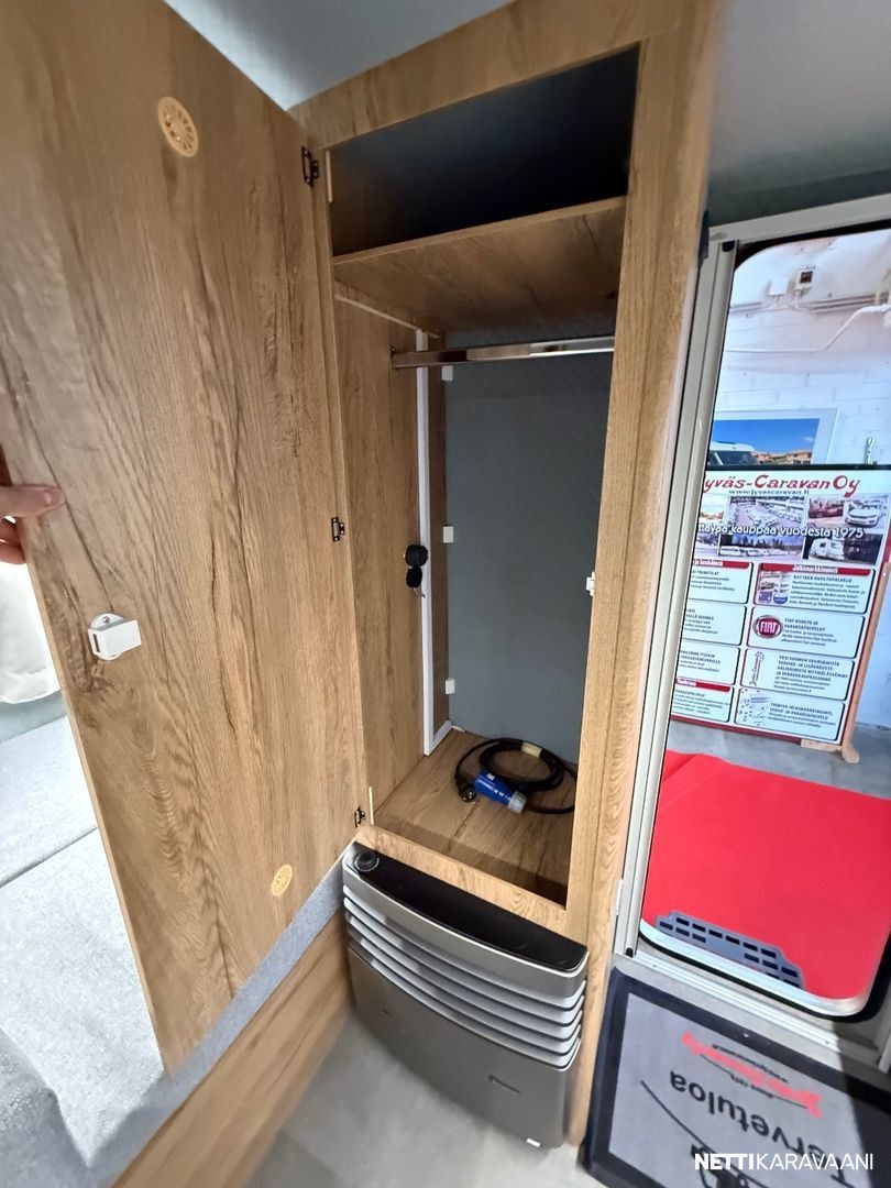 Jääkaappi, Kasettiverhot, Liesi, Pakastelokero, Pesuallas, Takakeittiö, Erikoisvanteet, Kattoluukku, Lattialämmitys, Trumatic, Tukijalat