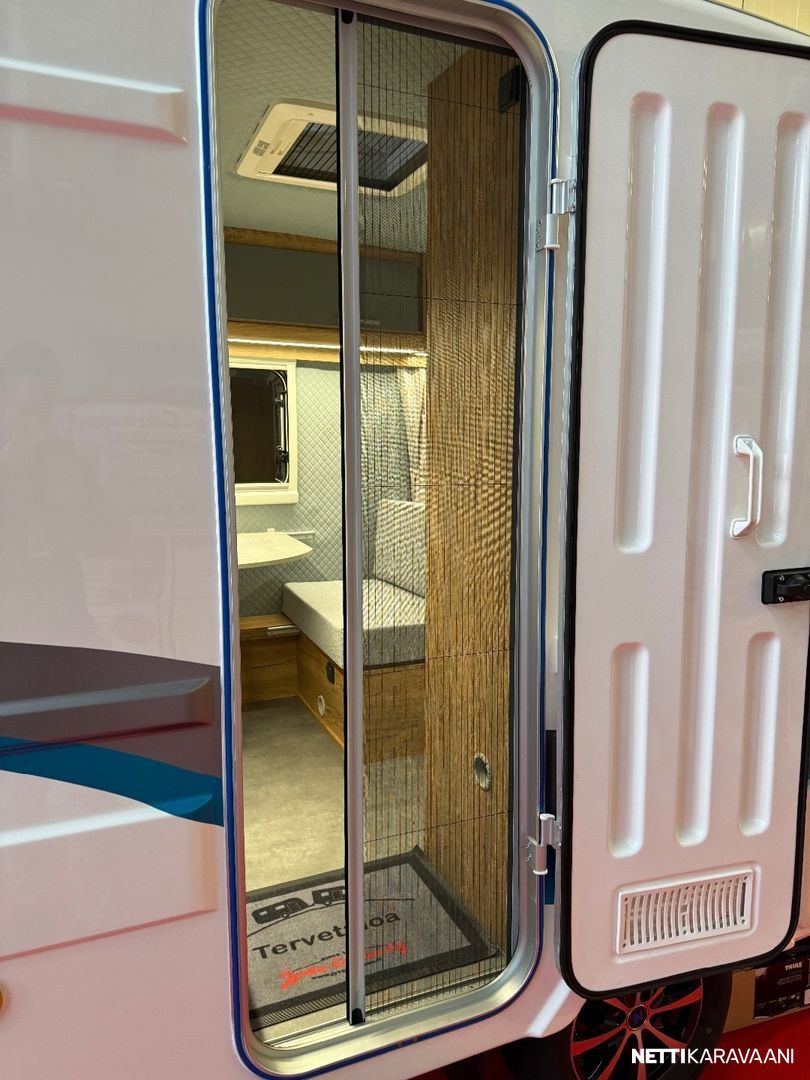 Leveys: 205 cm Pituus: 447 cm Kokonaismassa: 750 kg Makuupaikat: 3 Lämmitys: Ei määritelty