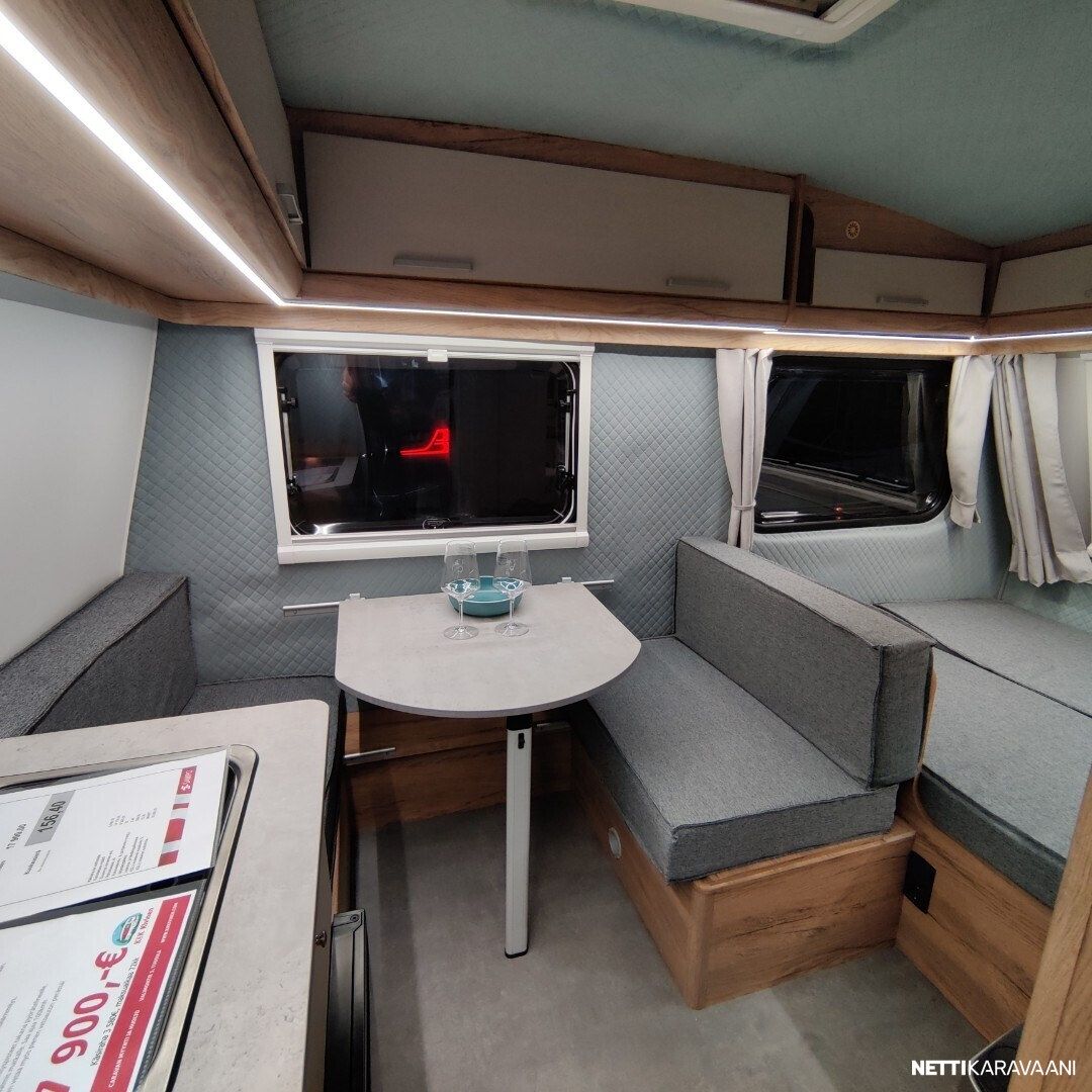 Leveys: 205 cm Pituus: 447 cm Kokonaismassa: 750 kg Oma massa: 690 kg Makuupaikat: 3 Lämmitys: Ei määritelty