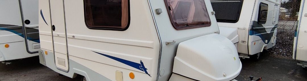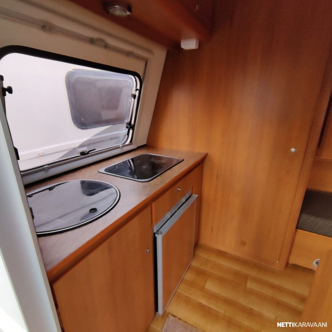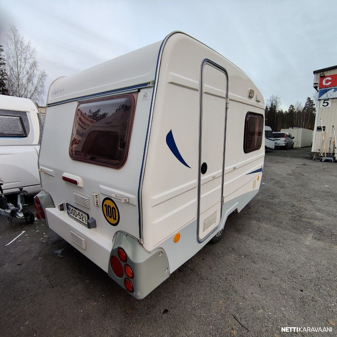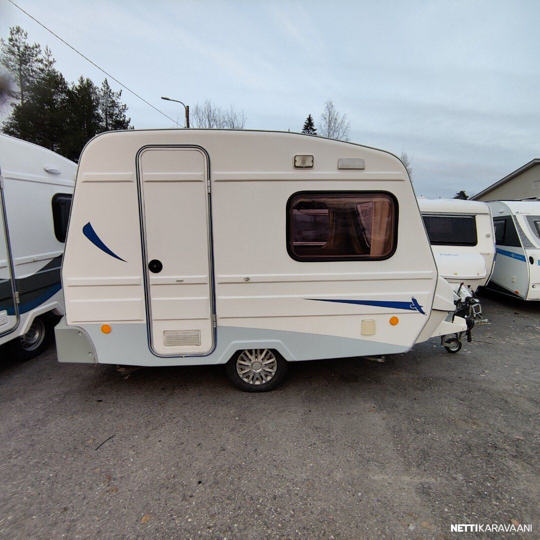 Siisti vaunu Vain yksi omistaja uudesta saakka ! Meidän uutenakin myymä yksilö! Vaunussa voi nukkua erillisvuoteissa tai pöydän laskemalla isossa parivuoteessa Pöytä on mukana Kasetti WC Akku ja laturi TV antenni Katsastus vapaa! Saa ajaa 100 kmh Jarrut ja turvallinen vetää myös pienellä autolla