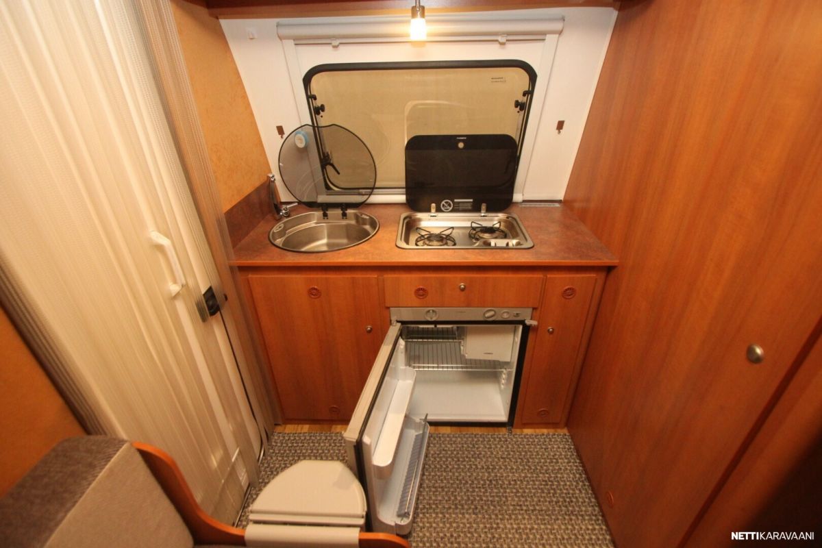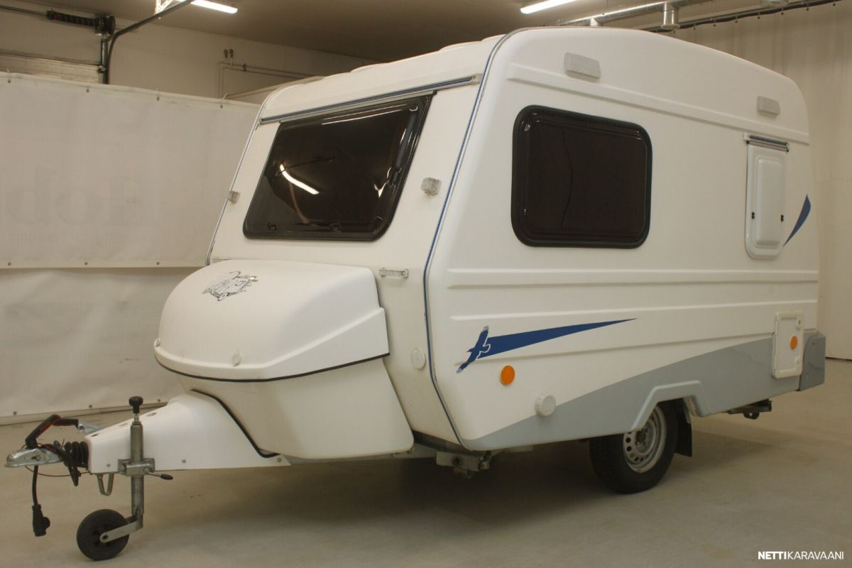 Leveys: 205 cm Pituus: 450 cm Kokonaismassa: 750 kg Oma massa: 690 kg Makuupaikat: 3 Lämmitys: Ei määritelty