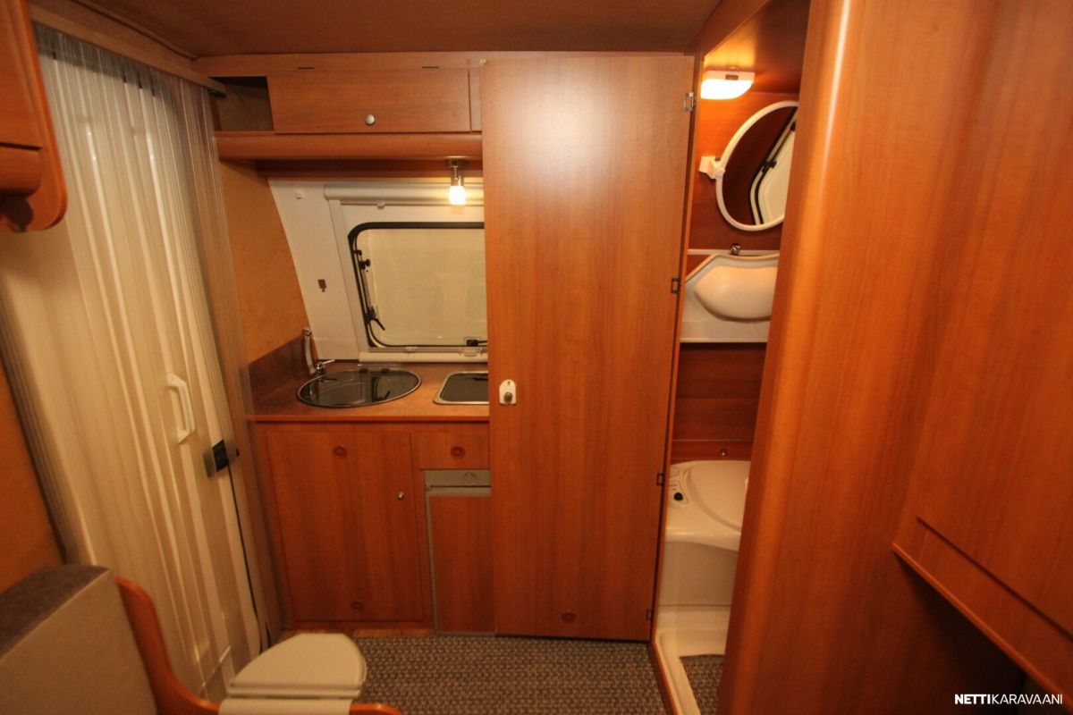 Kokonaispituus vain 4,5 metriä ja leveyttä 2,05m joten tämän mukavaan vetämiseen et tarvitse isoa maasturia vaan vaunu seuraa kevyesti myös pienempääkin autoa.