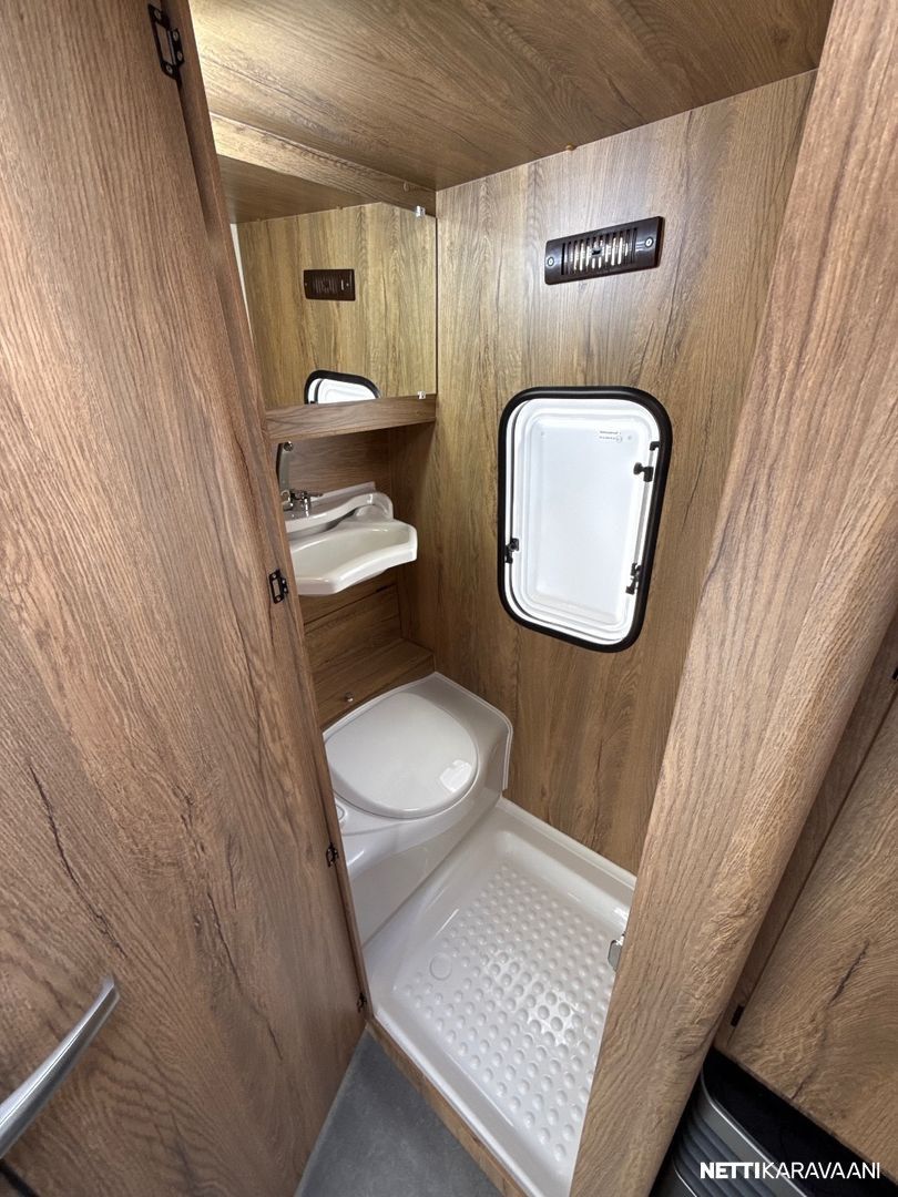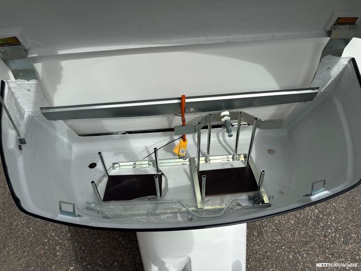 Jääkaappi, Kasetti WC, Kasettiverhot, Liesi, Pakastelokero, Pesuallas, Takakeittiö, Erikoisvanteet, Kattoluukku, Lattialämmitys, Trumatic, Tukijalat