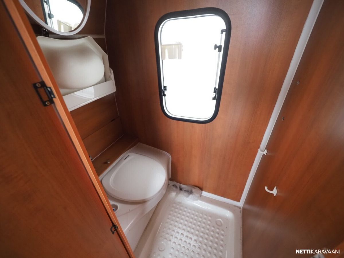 Jääkaappi, Kasetti WC, Kasettiverhot, Liesi, Lämminvesiboileri, Pakastelokero, Pesuallas, Kattoluukku, Trumatic, Tukijalat