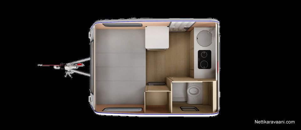 Leveys: 205 cm Pituus: 450 cm Kokonaismassa: 740 kg Oma massa: 690 kg Makuupaikat: 2 Lämmitys: Ei määritelty