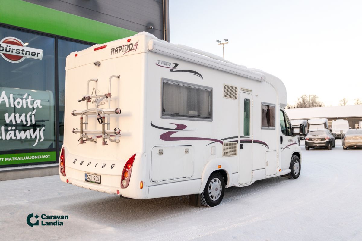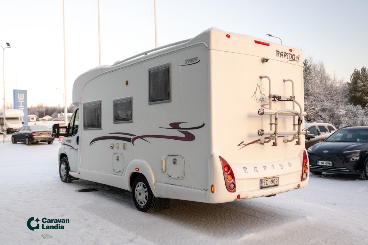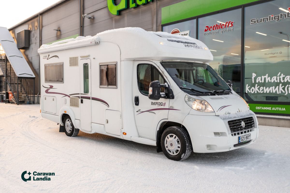 Tyylikäs Rapidon puoli-integroitu huippuvarusteilla, isommallekkin porukalle! NYT ALENNETTUUN HINTAAN! Markiisi Pyöräteline Hyttysverkko ovi Peruutuskamera Multimediakeskus Ilmastointi ajotilassa Luistonestojärjestelmä Lukkiutumattomat jarrut (ABS) Sähkökäyttöiset ikkunat Sähköpeilit Vakionopeudensäädin SkyRoof Aurinkopaneeli Ilmastointi asunto-osassa Iso kattoikkuna Iso pöytäryhmä Keskuslämmitys Truma Sähköpatruuna Pullonvaihtaja L-keittiö Liesituuletin Iso-jääkaappi Pakastelokero Liesi Parivuode pitkittäin Hubbet ylävuode Kasetti WC Pesuallas Suihku TV-antenni tai lautasantenni Meiltä voit ostaa etänä vaikka kotisohvaltasi! Kokeile kuinka helppoa ja vaivatonta matkailuajoneuvon ostaminen on.