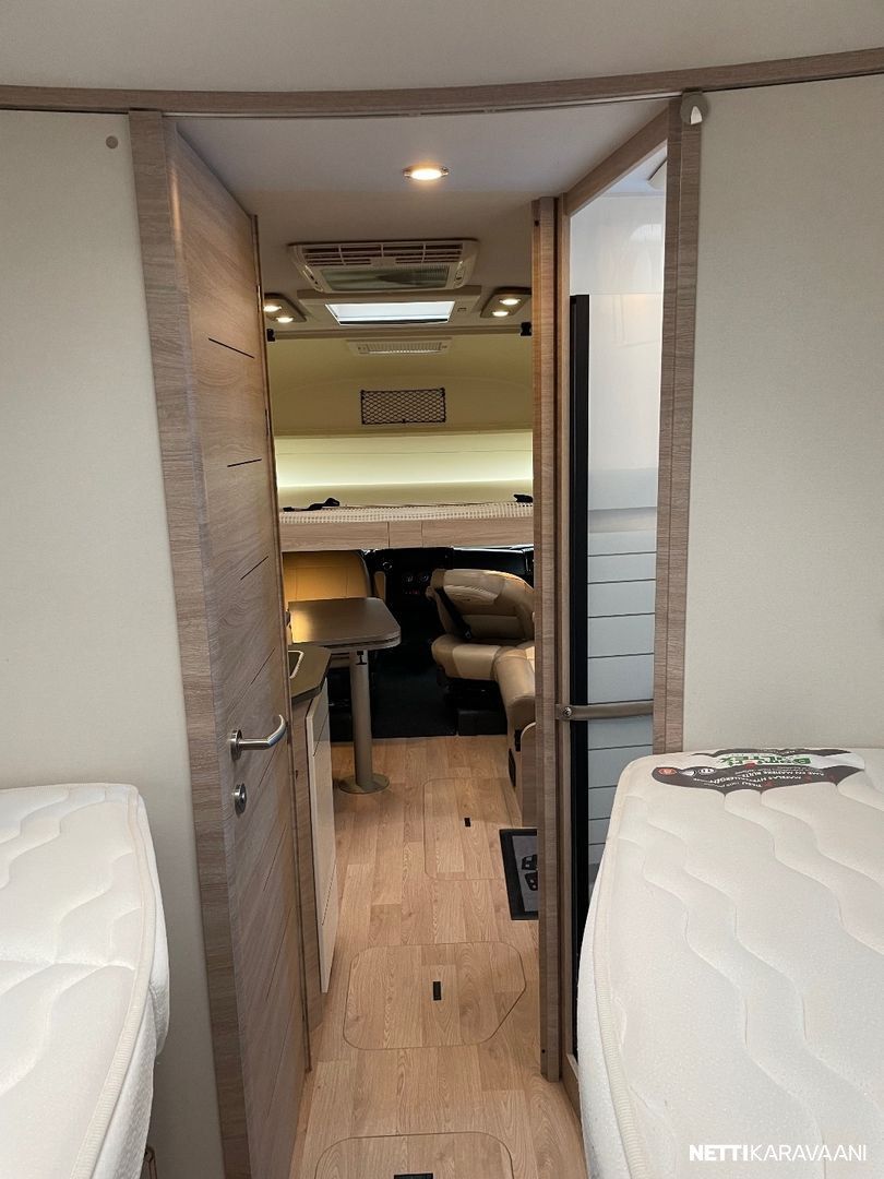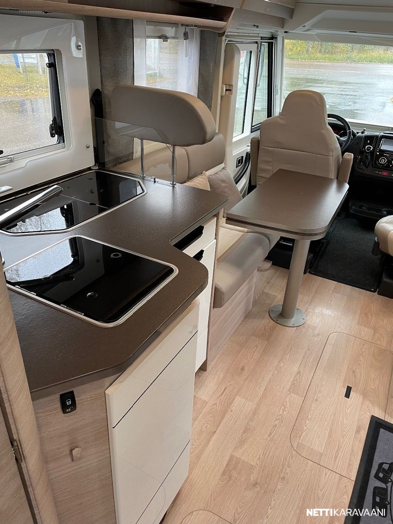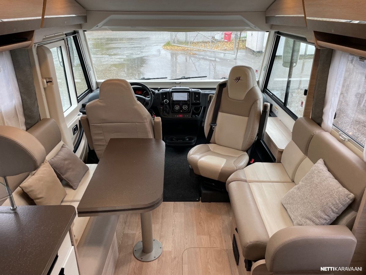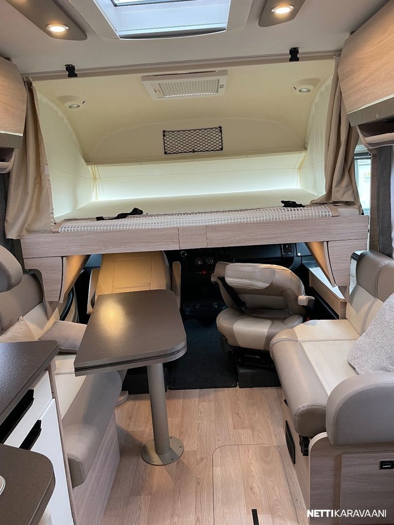 Ajotietokone, Jääkaappi, Kasetti WC, Kasettiverhot, Liesi, Lämminvesiboileri, Markiisi, Mikroaaltouuni, Ohjaustehostin, Pakastelokero, Pesuallas, Pysäköintikamera, Suihku, Sähkökäyttöiset ikkunat, Vakionopeudensäädin, ABS-jarrut, Airbag, Alde, Aurinkopaneeli, Erikoisvanteet, Eristetty harmaavesisäiliö, Kattoluukku, Sähkörappu