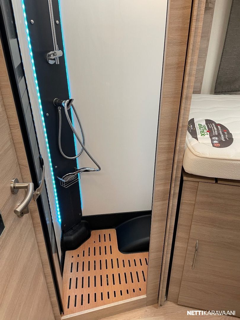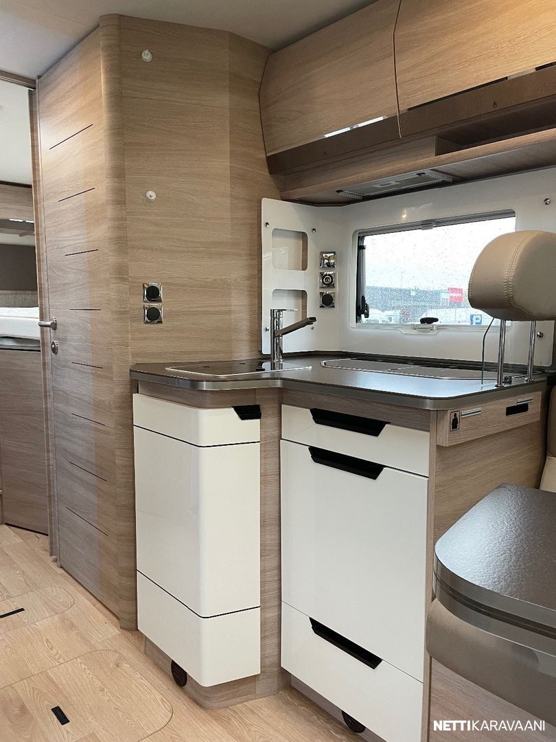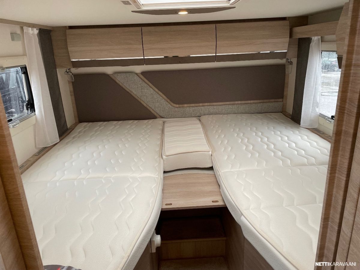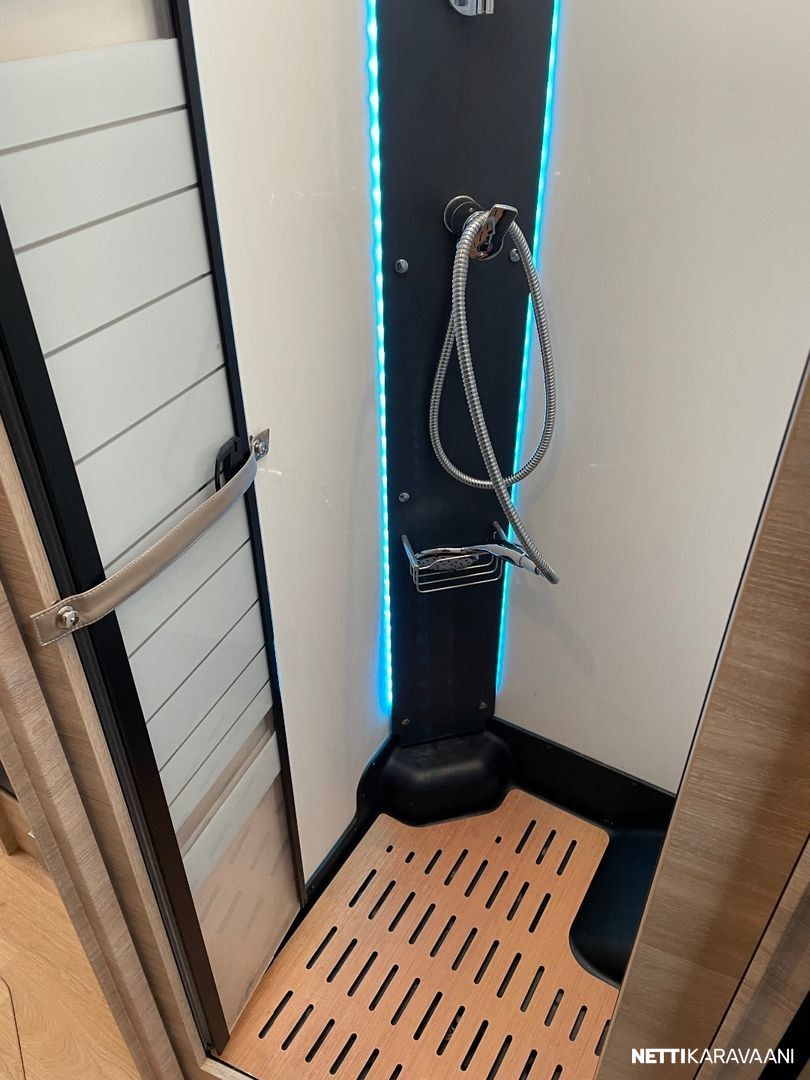 Ajotietokone, Jääkaappi, Kasetti WC, Kasettiverhot, Liesi, Lämminvesiboileri, Markiisi, Mikroaaltouuni, Ohjaustehostin, Pakastelokero, Pesuallas, Pysäköintikamera, Suihku, Sähkökäyttöiset ikkunat, Vakionopeudensäädin, ABS-jarrut, Airbag, Alde, Aurinkopaneeli, Erikoisvanteet, Eristetty harmaavesisäiliö, Kattoluukku, Sähkörappu