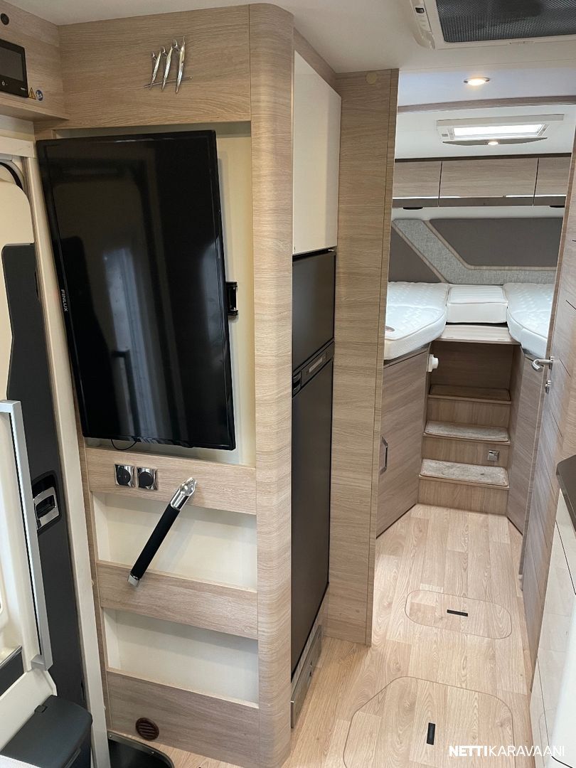 Vaihteisto: Automaatti Polttoaine: Diesel Vetotapa: Etuveto Leveys: 235 cm Pituus: 749 cm Rekisteröity: 01.10.2021 Katsastettu: 01.09.2025 Matkustajat: 4 Kokonaismassa: 4 400 kg Oma massa: 3 211 kg Makuupaikat: 5 Ajokortti: C Lämmitys: Nestekiertoinen keskuslämmitys