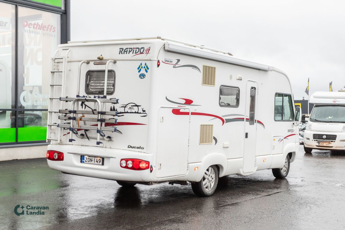Avara Truma-lämmitteinen integroitu Rapido neljälle valmiina tien päälle. Erikoisvanteet Markiisi Pyöräteline Kattokaiteet/tikkaat Tukijalat Kasettiverhot Peruutuskamera Lukkiutumattomat jarrut (ABS) Sähköpeilit Vakionopeudensäädin Iso kattoikkuna Keskuslämmitys Truma Sähköpatruuna Lämminvesiboileri Pullonvaihtaja Iso-jääkaappi Pakastelokero Kaasu-uuni Liesi Parivuode Hubbet ylävuode Kasetti WC Pesuallas Ulkosuihku Suihku Takatalli TV-antenni tai lautasantenni Meiltä voit ostaa etänä vaikka kotisohvaltasi! Kokeile kuinka helppoa ja vaivatonta matkailuajoneuvon ostaminen on.