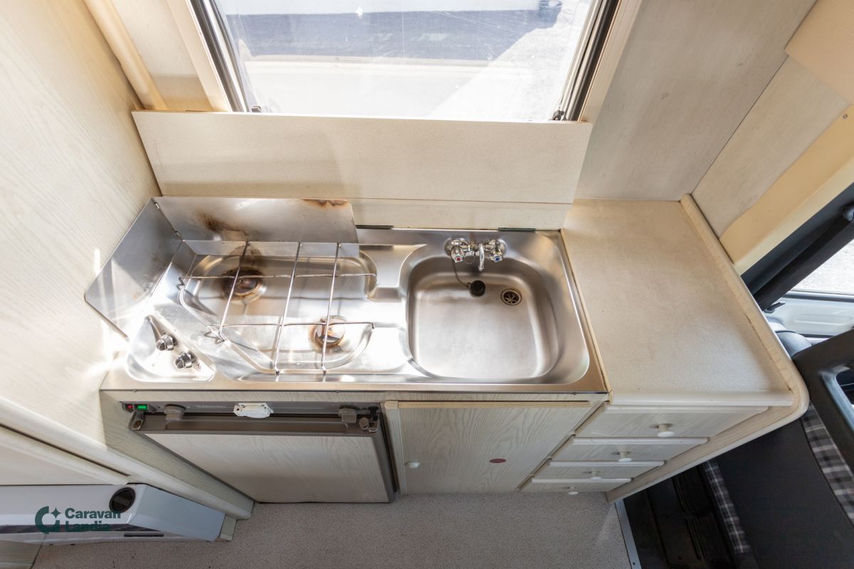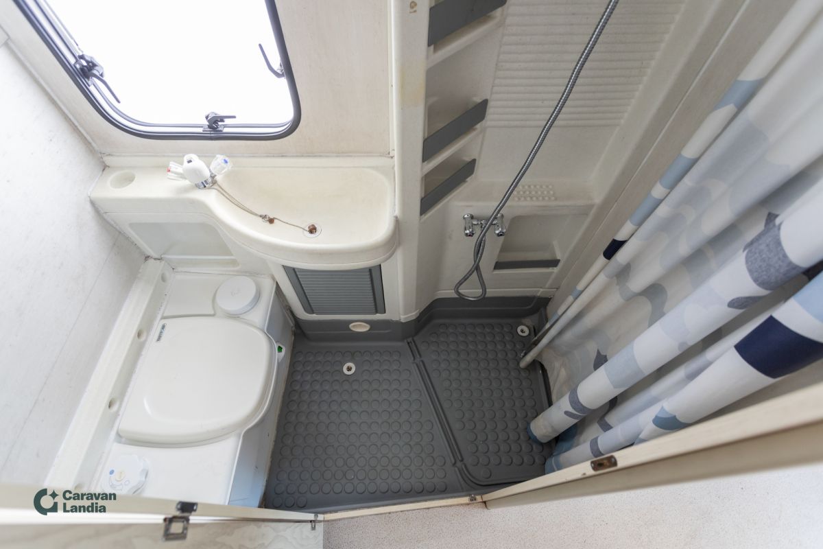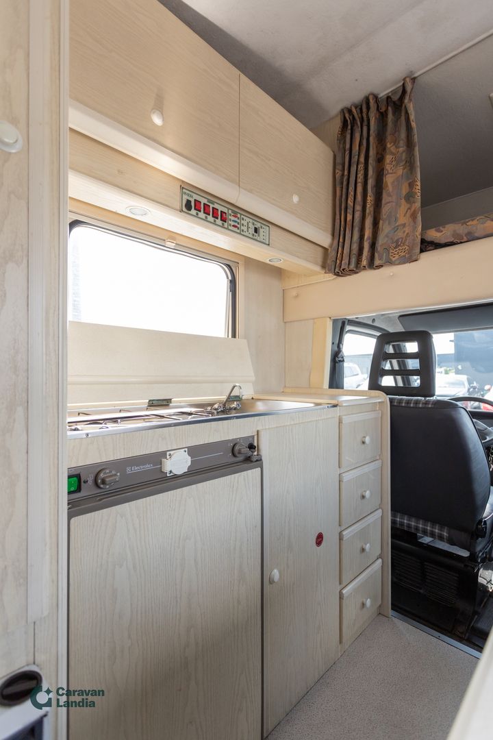 Valoisa alkovimallin auto Truma-lämmityksellä. Kattokaiteet/tikkaat CD-soitin Kattoluukku Iso pöytäryhmä Keskuslämmitys Truma Lämminvesiboileri Jääkaappi Pakastelokero Liesi Kasetti WC Pesuallas Suihku