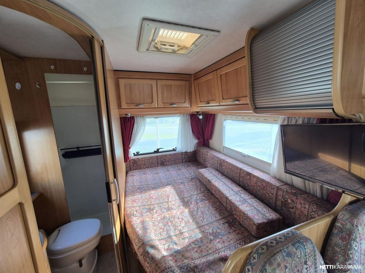 Takaosassa pitkittäinen parivuode ja Wc/suihkutilat.