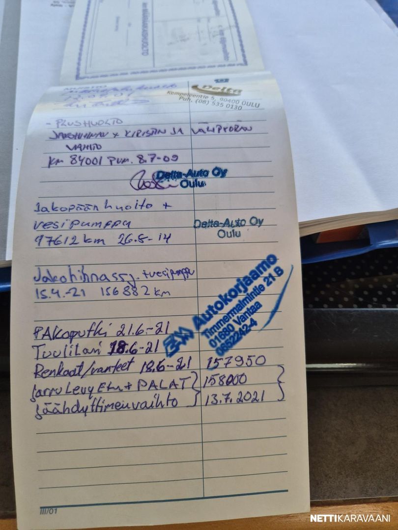 Huoltokirja, Trumatic, Kasetti WC, Suihku, Lämminvesiboileri, Pyöräteline, TV-antenni tai lautasantenni, Liesi, Jääkaappi, Pakastelokero, Peräboxi, Pesuallas, Radio