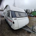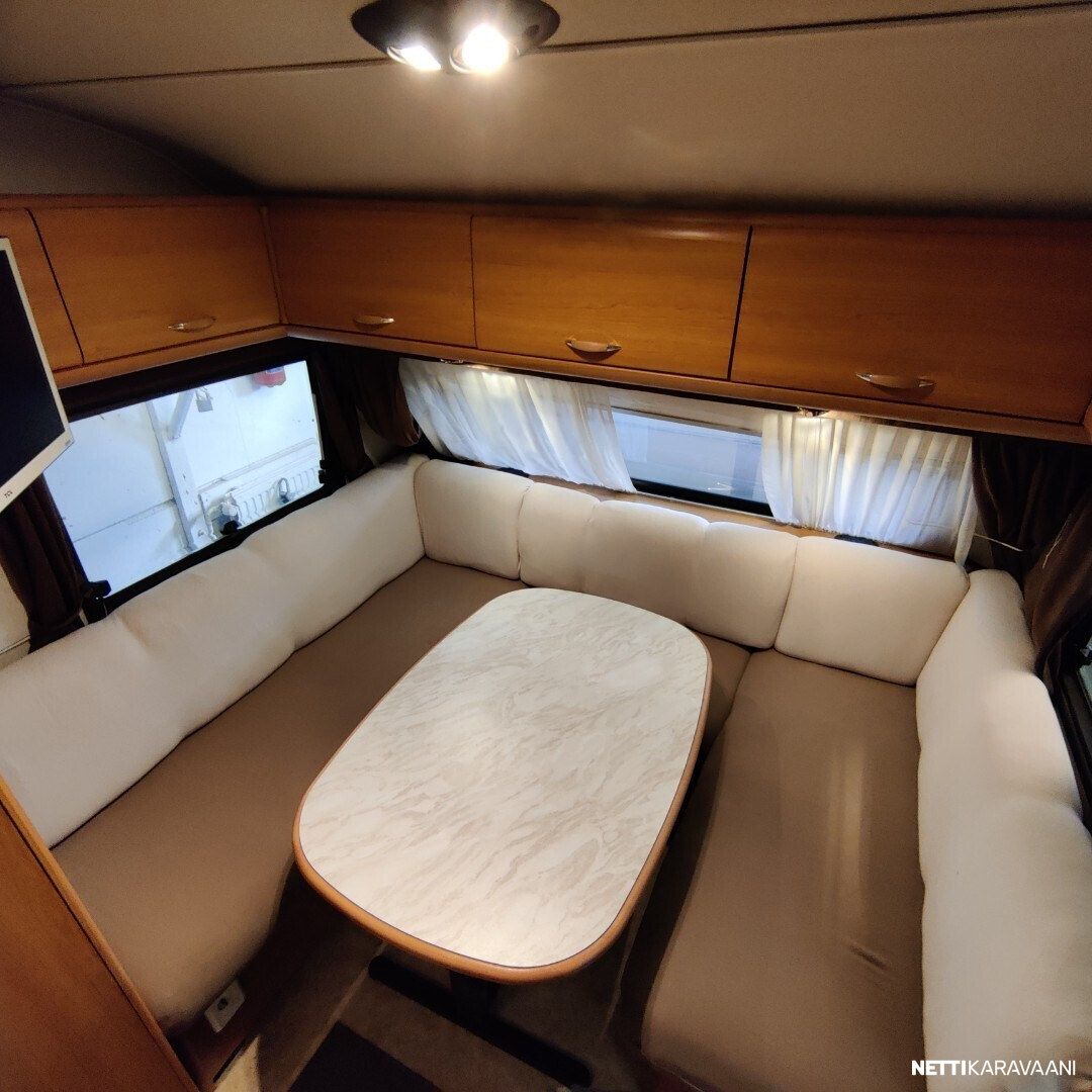 Siisti vaunu ! Juuri uusittu penkkien verhoilu Hyvät varusteet Primus nestekeskuslämmitys kaasulla ja sähköllä Sängyn alla mukana etuteltta ( ei tarkistettu kuntoa ) Reilusti kaappi tilaa Pussimarkiisi Lämmin vesi Pidee suihku Pyyhekuivain Akku ja laturi Tv antenni kWh mittari Takaosan yläkaappi muuttuu tarvittaessa lisävuoteeksi Tavaraluukku vuoteen alle Alumiinivanteet Juuri katsastettu 27.11.2025 Seuraava katsastus 12/2027