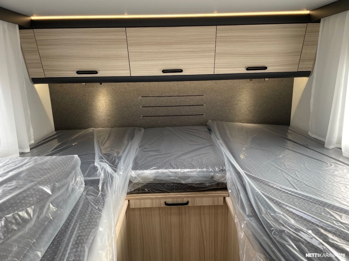 Ajotietokone, Jääkaappi, Kasetti WC, Kasettiverhot, Keskuslukitus: Kaukosäätöinen, Liesi, Lämminvesiboileri, Markiisi, Navigaattori, Ohjaustehostin, Pakastelokero, Pesuallas, Pysäköintikamera, Pysäköintitutka, Sisätilanpistoke, Suihku, Sähkökäyttöiset ikkunat, Sähköpeilit, Vakionopeudensäädin, ABS-jarrut, Airbag, Ajonvakautusjärjestelmä, Käynnistyksenesto, Sumuvalot, Erikoisvanteet, Eristetty harmaavesisäiliö, Kattoluukku, Lattialämmitys, Sähköpatruuna, Sähkörappu, Trumatic, Tukijalat, Turbo