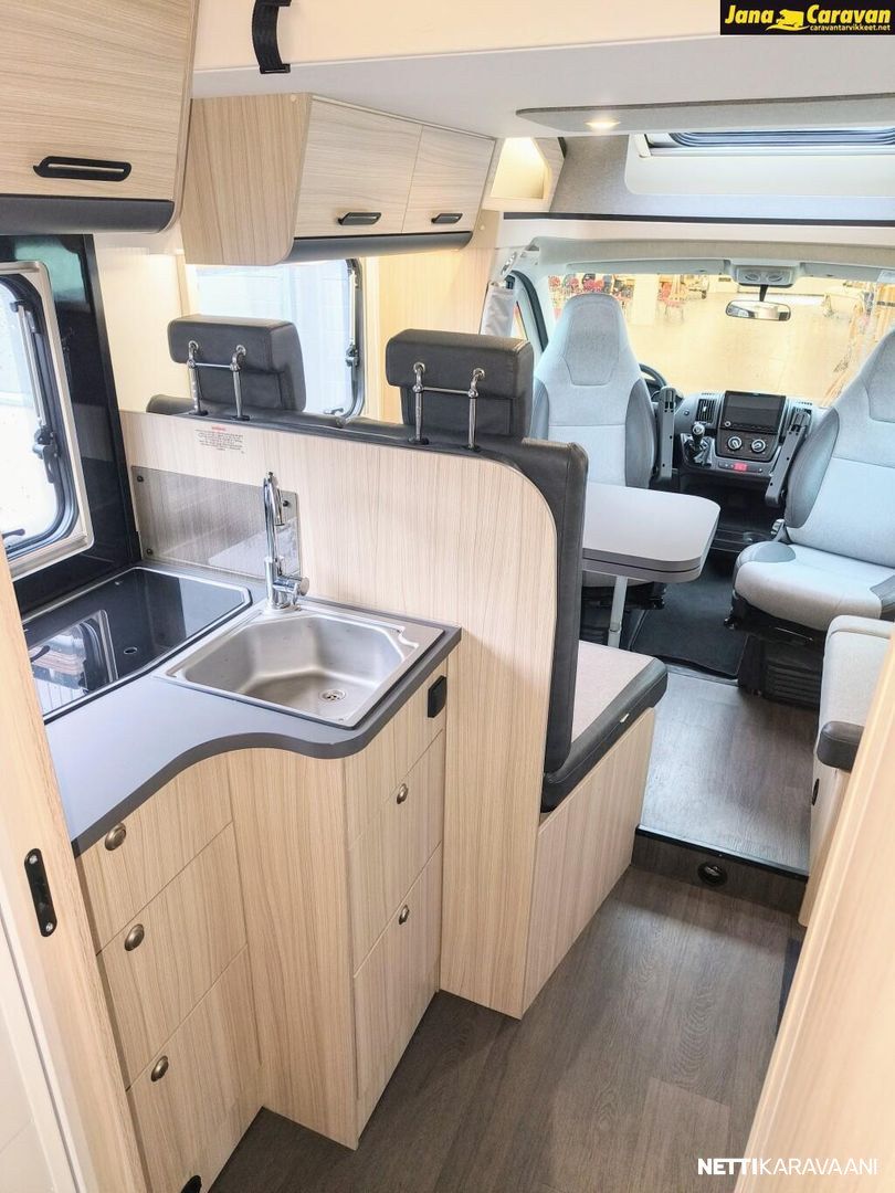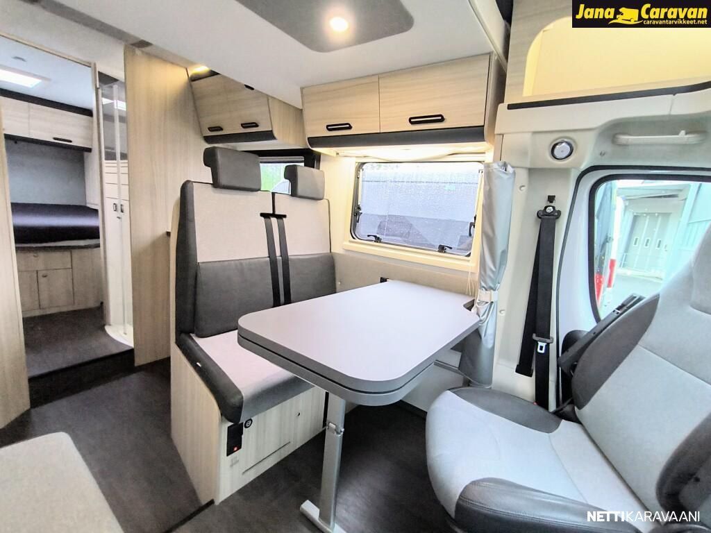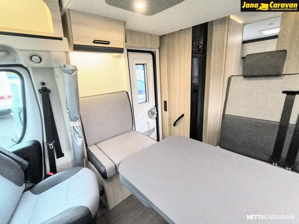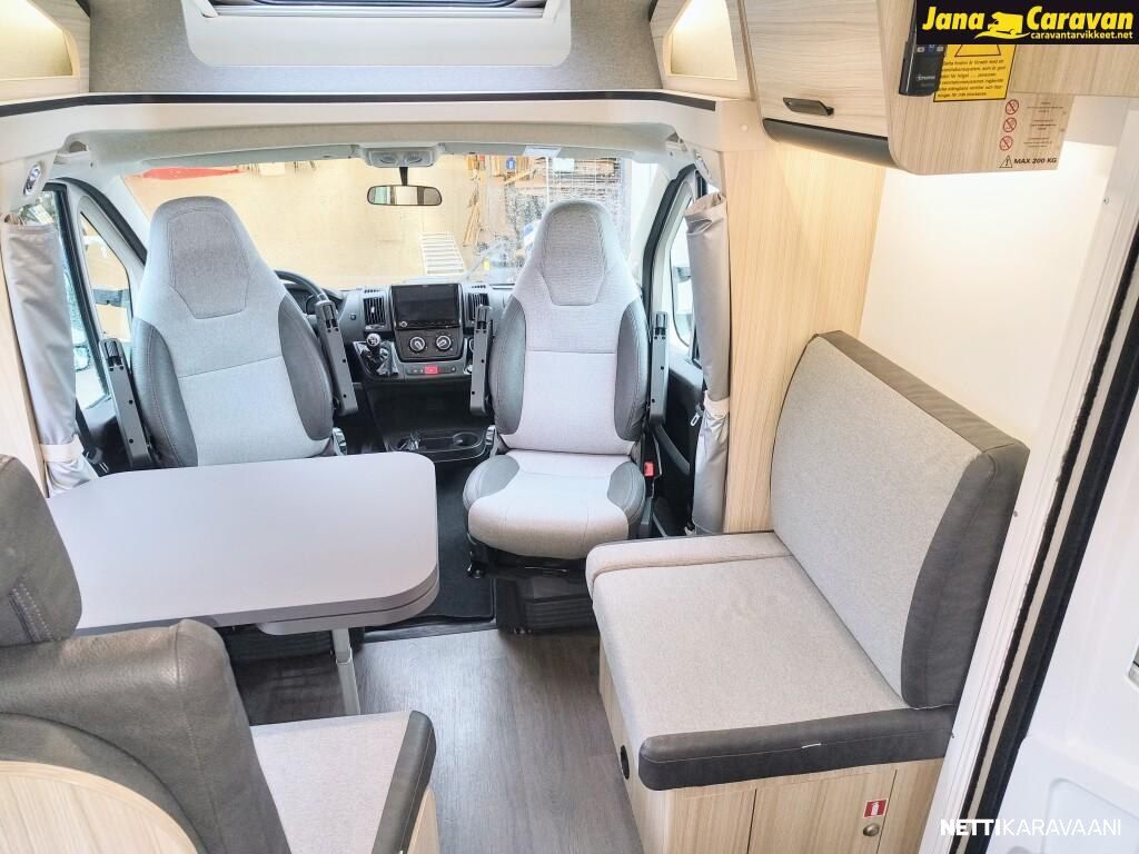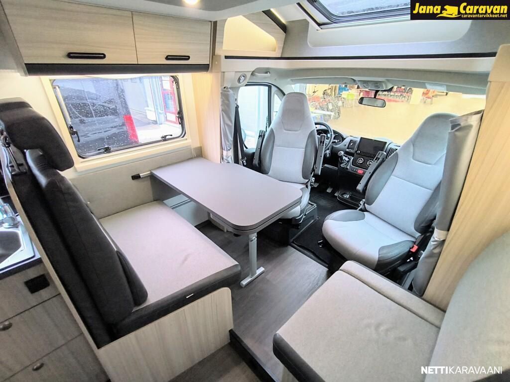 Ohjaustehostin, Sähkökäyttöiset ikkunat, ABS-jarrut, Airbag, Huoltokirja, Käynnistyksenesto, Kattoluukku, Luistonesto, Vakionopeudensäädin, Ajotietokone, Sähköpeilit, Navigaattori, Ajonvakautusjärjestelmä, Turbo, Kasetti WC, Suihku, Lämminvesiboileri, Markiisi, Liesi, Jääkaappi, Pakastelokero, Eristetty harmaavesisäiliö, Kasettiverhot, Pesuallas, Sähköpatruuna, Keskuslukitus: Kaukosäätöinen, Ilmastointi: Manuaalinen, Radio, USB, Bluetooth