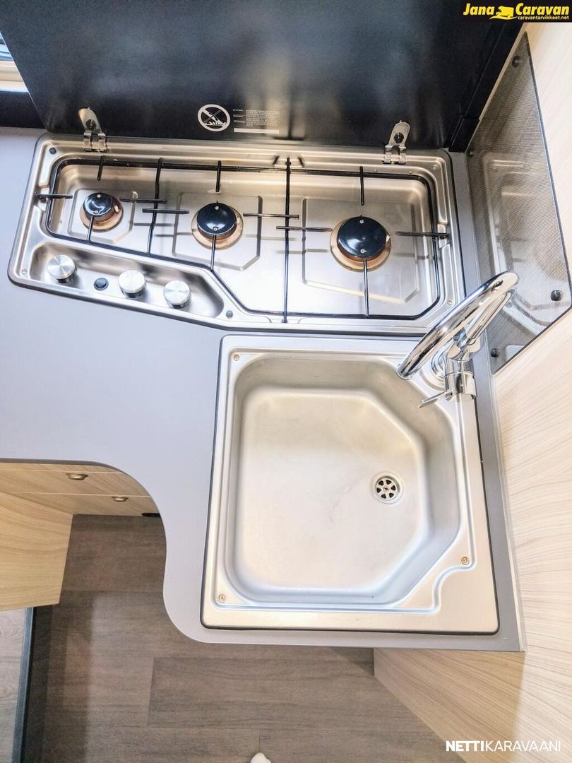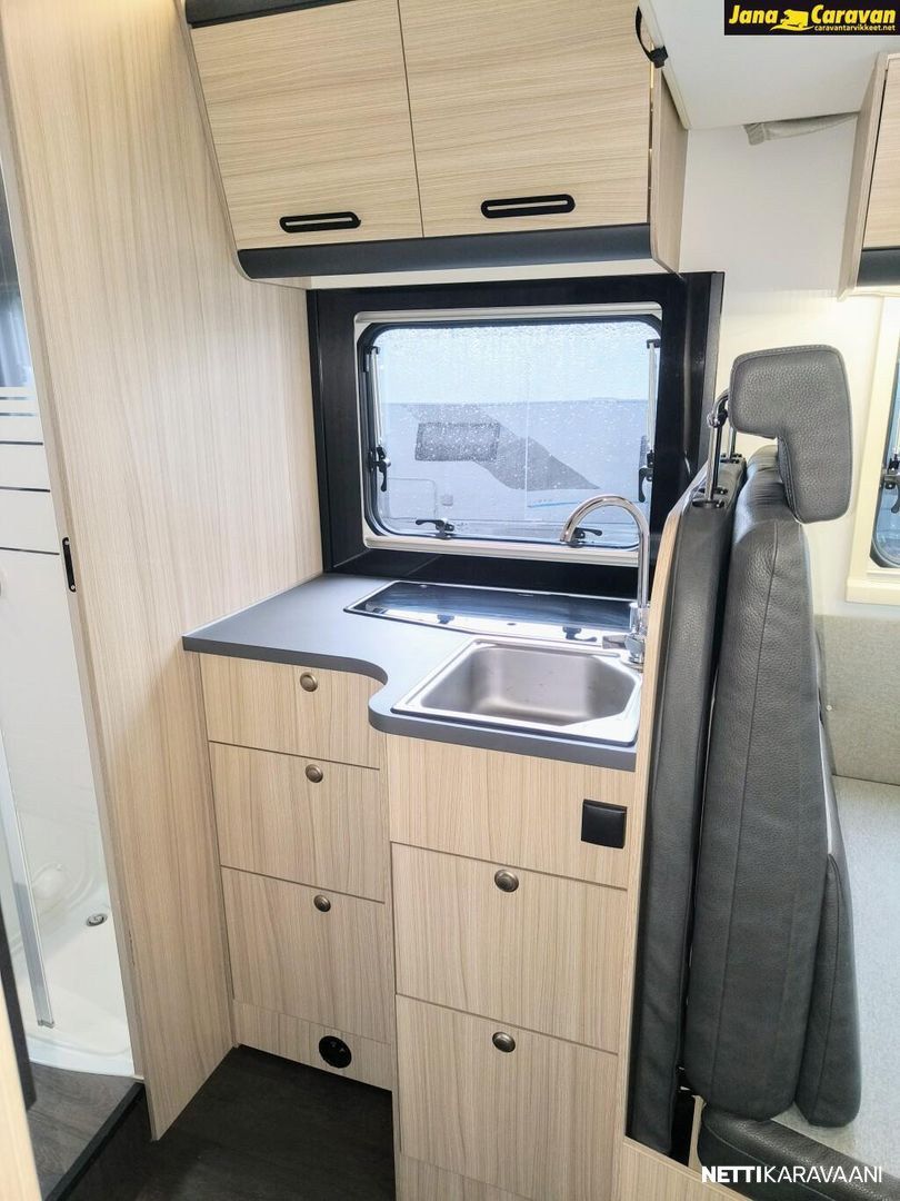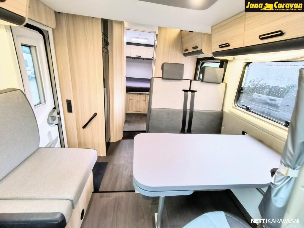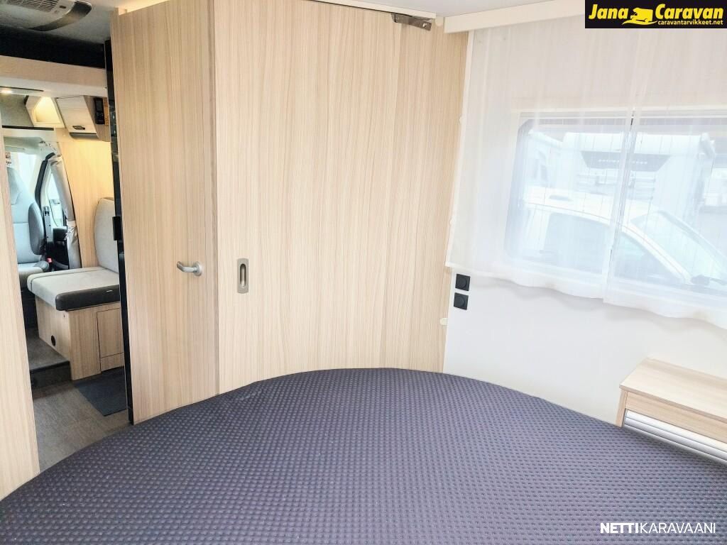 Ohjaustehostin, Sähkökäyttöiset ikkunat, ABS-jarrut, Airbag, Huoltokirja, Käynnistyksenesto, Kattoluukku, Luistonesto, Vakionopeudensäädin, Ajotietokone, Sähköpeilit, Navigaattori, Ajonvakautusjärjestelmä, Turbo, Kasetti WC, Suihku, Lämminvesiboileri, Markiisi, Liesi, Jääkaappi, Pakastelokero, Eristetty harmaavesisäiliö, Kasettiverhot, Pesuallas, Sähköpatruuna, Keskuslukitus: Kaukosäätöinen, Ilmastointi: Manuaalinen, Radio, USB, Bluetooth