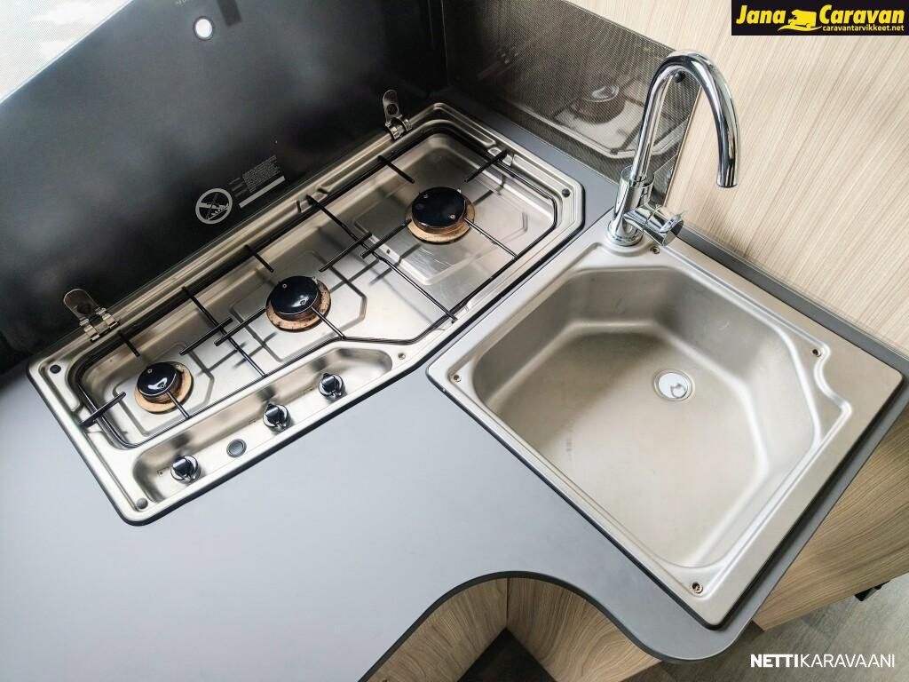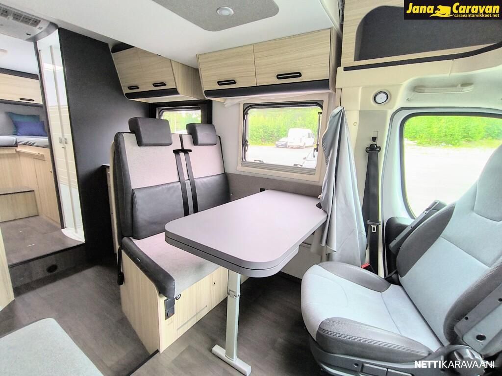 Ohjaustehostin, Sähkökäyttöiset ikkunat, ABS-jarrut, Airbag, Huoltokirja, Käynnistyksenesto, Kattoluukku, Luistonesto, Vakionopeudensäädin, Ajotietokone, Sähköpeilit, Navigaattori, Ajonvakautusjärjestelmä, Turbo, Kasetti WC, Suihku, Lämminvesiboileri, Markiisi, Liesi, Jääkaappi, Pakastelokero, Eristetty harmaavesisäiliö, Kasettiverhot, Sähkörappu, Pesuallas, Sähköpatruuna, Aurinkopaneeli, Pysäköintikamera, Keskuslukitus: Kaukosäätöinen, Ilmastointi: Manuaalinen, Radio, USB, Bluetooth