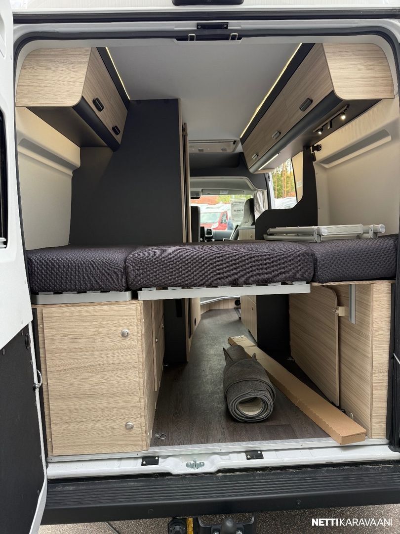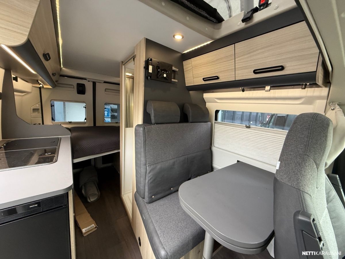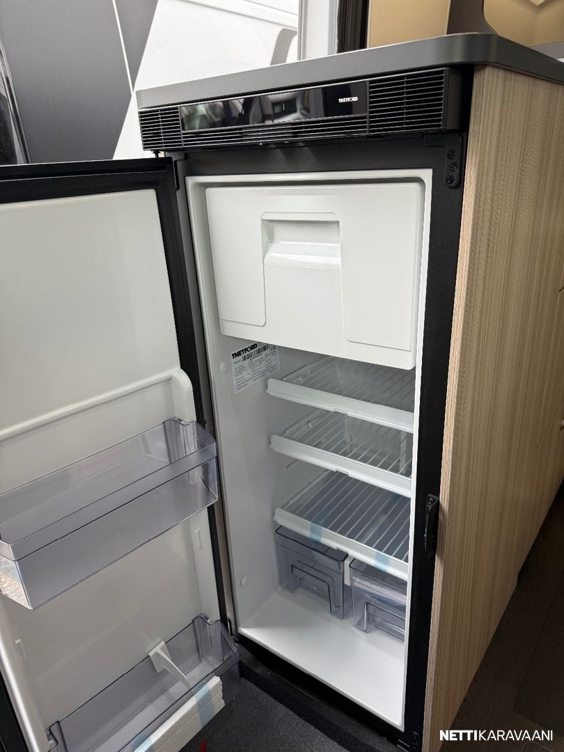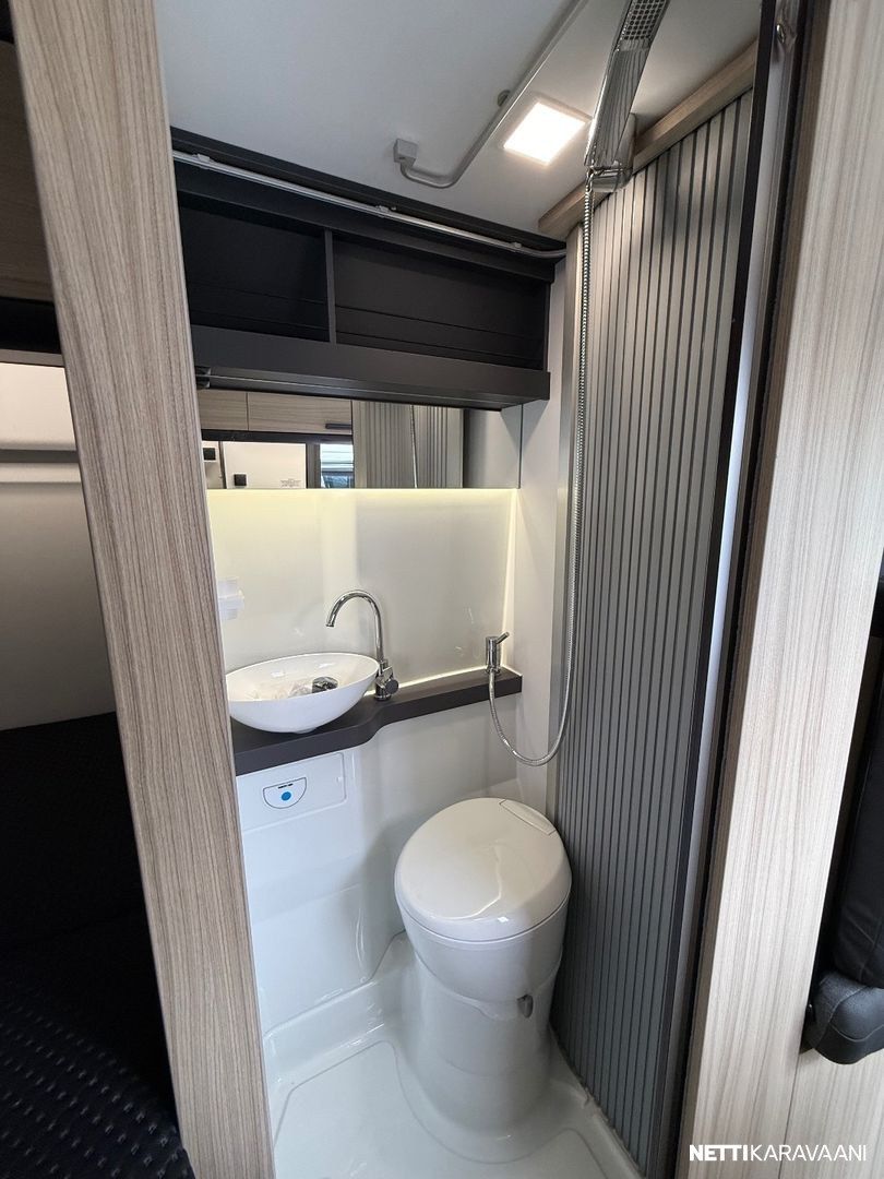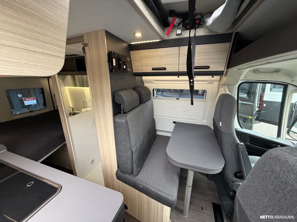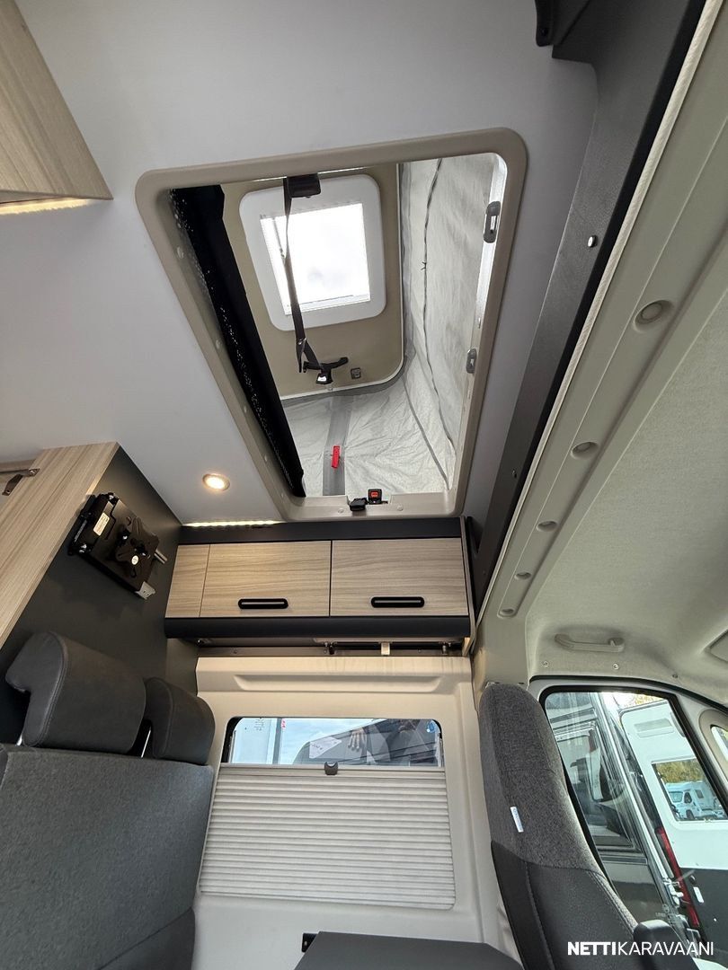 LÄMMITYS Truma Combi D 6 E *Sähkökäyttöinen lattialämmitys *Eristetty ja lämmitettävä jätevesisäiliö ASUINOSA Pop-up nostokatto *Sähköinen harmaavesisäiliön tyhjennys *Sivuoven hyönteisverkko *TV-teline *DC/DC muunnin (latausvahvistin) *Ilmastoinnin,antennin ja aurinkopaneelin asennusvalmius *Isofix.