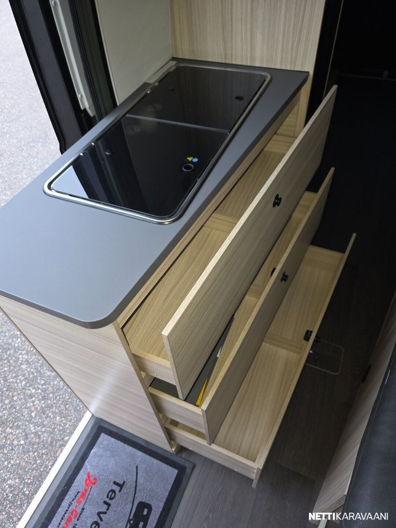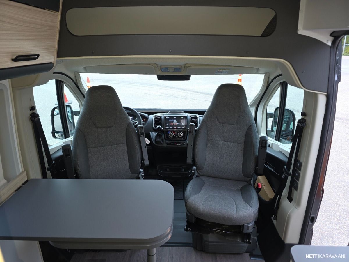 Ajotietokone, Jääkaappi, Kasetti WC, Kasettiverhot, Liesi, Markiisi, Ohjaustehostin, Pesuallas, Pysäköintikamera, Suihku, Sähkökäyttöiset ikkunat, Sähköpeilit, Vakionopeudensäädin, ABS-jarrut, Airbag, Ajonvakautusjärjestelmä, Käynnistyksenesto, Luistonesto, Erikoisvanteet, Lattialämmitys, Sähkörappu, Trumatic, Turbo, Keskuslukitus: Kaukosäätöinen