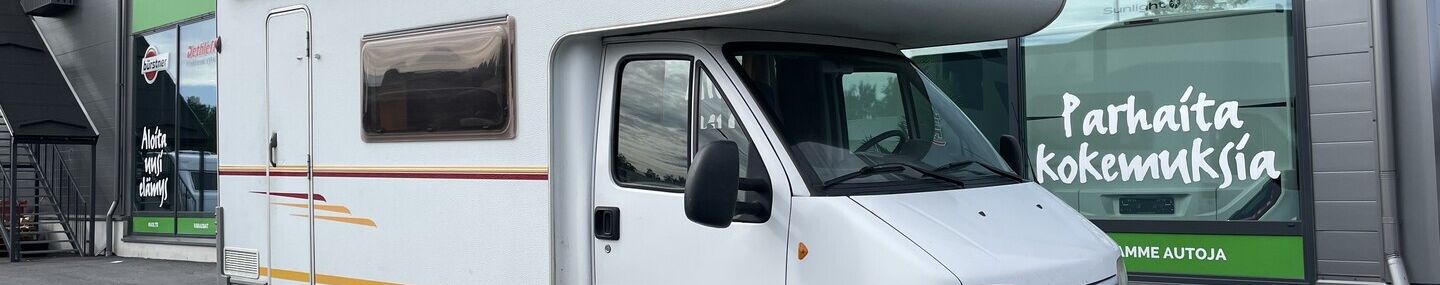 TÄHÄN AJONEUVOON KILPAILUKYKYINEN KORKO! - Etsitkö kompaktia alkoviautoa, joka vie sinut minne tahansa? Sunlight A54 on täydellinen valinta seikkailunhaluiselle perheelle. Tämä matkakoti tarjoaa mukavat nukkumapaikat jopa neljälle ja kaiken, mitä tarvitset ikimuistoiseen matkaan. Pienemmilläkin teillä kulkeminen ja pysäköinti on helppoa! Pariskunnille Retkeilijöille Markiisi Pyöräteline Huoltokirja Stereot Sähkökäyttöiset ikkunat Sähköpeilit Turbo Kattoluukku Vastakkainen istuinryhmä Sivusohva Truma Takakeittiö Jääkaappi Pakastelokero Kaasuliesi Mikroaaltouuni Parivuode pitkittäin Kasetti WC Pesuallas Suihku Meiltä voit ostaa etänä vaikka kotisohvaltasi! Kokeile kuinka helppoa ja vaivatonta matkailuajoneuvon ostaminen on.