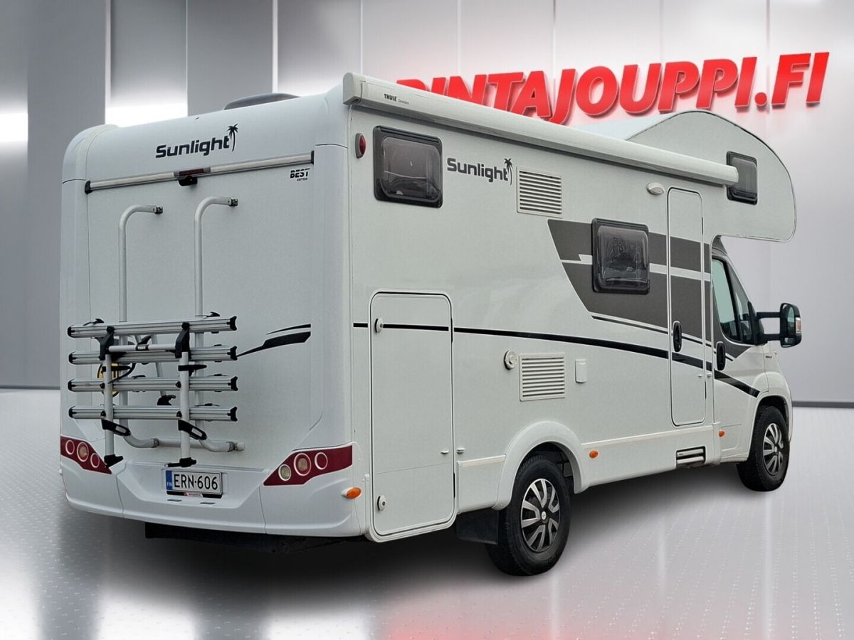 Katso kaikki kuvat, tarkemmat tiedot ja varaa omaksesi: https://www.rintajouppi.fi/auto/sunlight/a_68/ERN-606/ * J. Rinta-Joupilta vaihtoautoihin 3 kk lyhennysvapaa. Osta nyt, maksa myöhemmin! Edellyttää osamaksusopimusta. Tarkista kampanjan ehdot myyjältä. * 14 päivän palautusoikeus. Mielenrauhaa autokauppaan. Osta rauhassa, päätä varmuudella. Vain kuluttaja-asiakkaat. LÖYTÖ! - Tätä ajoneuvoa myyjämme suosittelevat! Aj. 86 tkm Suomi- auto Huoltokirja Automaatti Rekisteröity kuudelle Saa ajaa B- kortilla Asunto-osan ilmastointi Nukkumapaikat jopa kuudelle Kaksikerrosvuode takana poikittain Alkoviparisänky ohjaamon yläpuolella Vastakkainistuttavaan pöytäryhmään mahdollista pedata lisävuode jopa kahdelle Trumatic ilmakiertolämmitys kaasulla ja sähköllä Lämminvesivaraaja Lattian mukavuuslämmitys sähköllä 230 V Sivukeittiö Kaasuliesi Iso jääkaappi ja erillinen pakastin Kasetti WC Erillinen suihkukaappi Ohjaamoilmastointi Vakionopeudensäädin Erillinen peruutuskamera Radio / CD / AUX / USB- soitin Nahkaverhoiltu ohjauspyörä Keskuslukko Markiisi TV- antenni Polkupyöräteline neljälle pyörälle Sähkörappu Pituus: 660 cm Leveys: 232 cm Korkeus: 314 cm + TV- antenni Omamassa: 2807 kg Kokonaismassa: 3500 kg Alkovi Parivuode Kerrossänky Keskuslämmitys * Tutustu matkailuautovalikoimaamme osoitteesta https://www.rintajouppi.fi/matkailuautot/ tai koko caravan-valikoimaamme https://www.rintajouppi.fi/matkailuautot-ja-vaunut/ * Tämä ja kaikki tuhansista vaihtoautoistamme ovat ostettavissa mistä tahansa päin Suomea - kaikista J. Rinta-Joupin toimipisteistä.