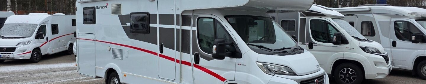 Vähän ajettu kuuden hengen alkovimalli henkilöautokortilla ja isolla takatallilla yksityiskäytöstä