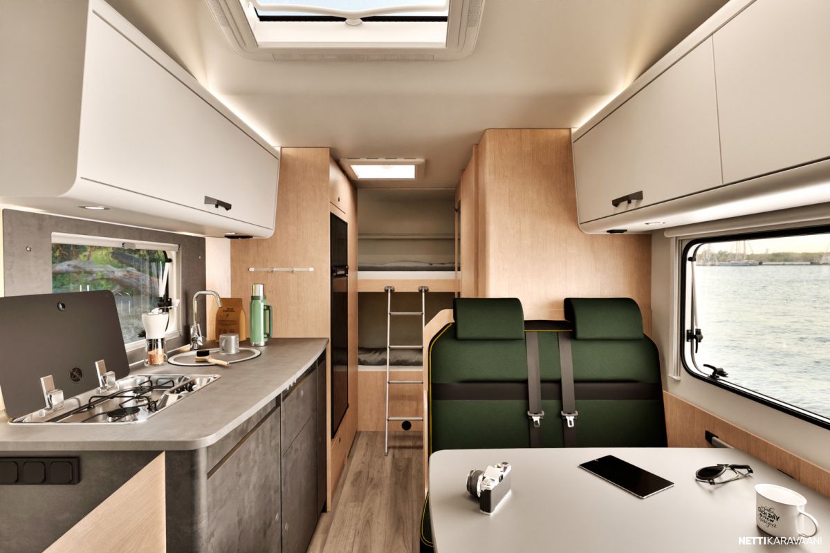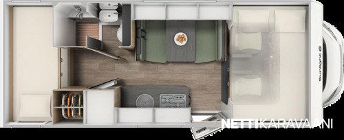 Tulossa loppuvuodesta 2025 hieno ja hyvällä pohjalla varustettu alkovin mallin Sunlight jossa petipaikat sekä istuinpaikat 6:lle hengelle.