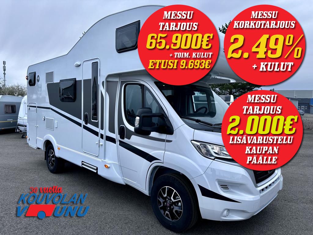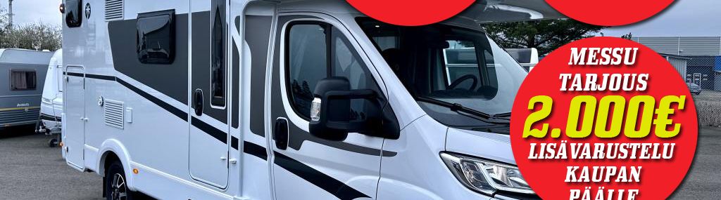 TÄMÄ AUTO MESSUTARJOUSHINNALLA 65.900EUR + TOIM.KULUT. AUTON NORMIHINTA 75.593EUR ELI SÄÄSTÄT 9.693EUR! NYT SAAT VIELÄ 2.000E LISÄVARUSTELUN KAUPAN PÄÄLLE JA LISÄKSI EDULLISEN 2.49% + KULUT KORKOTARJOUKSEN AUTOLLE AINA 72KK JA ISOMMALLA VIIMEISELLÄ ERÄLLÄ. MESSUTARJOUS VOIMASSA 02.02.2026 ASTI, Uusi rekisteröimätön auto, jonka takuut alkaa rekisteröintipäivästä. Täystakuu 2 vuotta. Monipuolinen alkovimalli Sunlightilta jossa loistavasti tilaa isommallekin perheelle tai vuokrauskäyttöön sillä istuin- ja vuodepaikat löytyy kuudelle hengelle ja kahdessa istuimessa myös isofixit. Ohjaamon yllä olevan parivuoteen voi nostaa pystyyn jolloin ohjaamoon kulku on vaivatonta. Samoin takana alempi kerrosvuode nousee kaasujousilla kätevästi pystyyn ja tila muuntuu läpikuljettavaksi tavaratilaksi jolloin tavaratilaan mahtuu esim. 2 pyörää sisälle, Varusteet:, Fiat Ducato 3.500 kg - 2.2 Multijet - 103 kW / 140 hv Euro 6D - 6-vaihteinen manuaalivaihteisto, 16" alumiinivanteet (Original Fiat) Light-alustaan, 2. luukku takatavaratilaan (koko mallista riippuen), Vuoteentekomahdollisuus istuinryhmään poikittain, Turvallisuuspaketti alkovit: 2 niskatyynyä ja 2 lannevyötä selkä menosuuntaan, Korkea 156 l jääkaappi ja erillinen pakastelokero 29 l, Green Trail-verhoilu, Truma Combi 6 ilmakeskuslämmitys (kaasu), Lämmin vesi, Basic-paketti, Haluatko videoesittelyn autosta Whatsappiin? Kysy!, ABS-jarrut, Erikoisvanteet, Ilmastointi ajotilassa, Ilmastointi man., Keskuslukitus, Parivuode, Suihku, Trumatic, Vak.nopeudensäädin