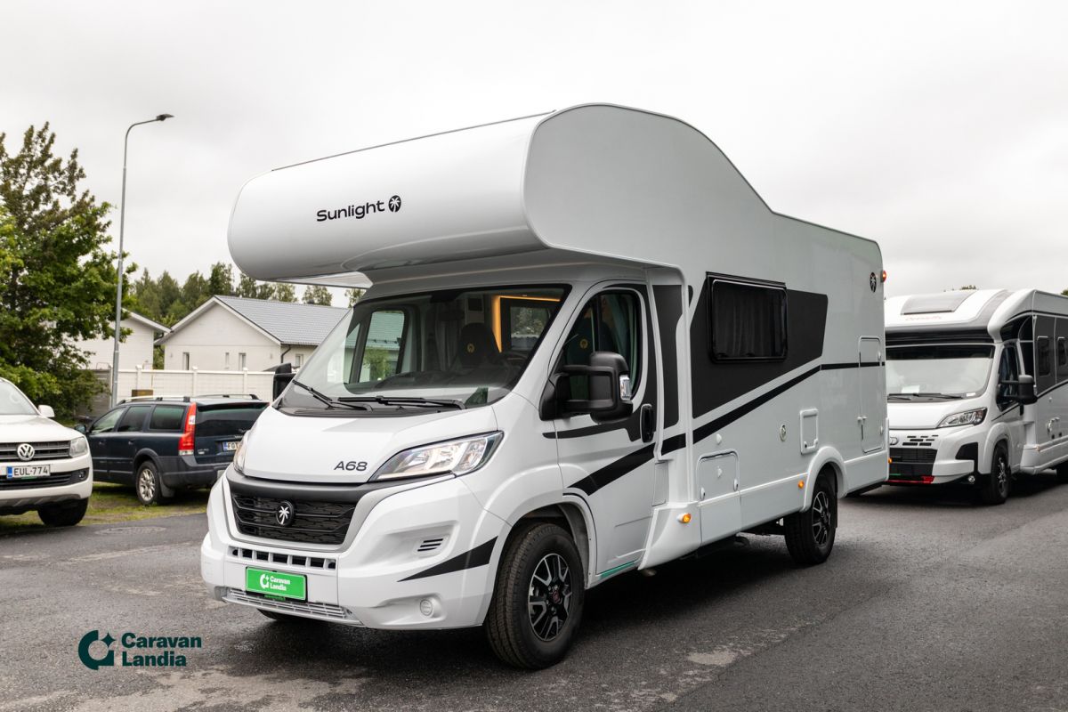 TÄHÄN AUTOON 1500 € ERIKOISALENNUS + MUITA HUIKEITA ETUJA - ##TÄHÄN ERIKOISRAHOITUS 0,99 % KOROLLA!## - Sunlight A 68 : Tilava ja toimiva alkovi-matkailuauto koko perheelle! ##TÄHÄN ERIKOISRAHOITUS 0,99 % KOROLLA!## NYT ALENNETTUUN HINTAAN, NORM.HINTA 75.790€ ALENNUS LÄHES 6.000 € Tämä suosittu malli on suunniteltu mukavaan lomailuun ja tarjoaa runsaasti tilaa jopa kuudelle matkustajalle ja nukkumapaikoille. Sen tehokas 2.2-litrainen moottori takaa sujuvan matkanteon. Iso alkovivuode ja takana sijaitsevat kätevät kerrossängyt takaavat mukavat yöunet, ja käytännöllinen keittiö sekä tilavat säilytystilat tekevät arjesta helppoa tien päällä. Nauti vapauden tunteesta ja luo ikimuistoisia hetkiä – tämä Sunlight on valmiina kaikkiin seikkailuihin! Fiat Ducato 3.500 kg - 2.2 Multijet - 103 kW / 140 hv Euro 6D - 6-vaihteinen manuaalivaihteisto, 16" alumiinivanteet (Original Fiat) Light-alustaan, 2. luukku takatavaratilaan, Vuoteentekomahdollisuus istuinryhmään poikittain, Turvallisuuspaketti alkovit: 2 niskatyynyä ja 2 lannevyötä selkä menosuuntaan (huomioi tarvittava kantavuus!), Korkea 156 l jääkaappi ja erillinen pakastelokero 29 l, Green Trail, Basic-paketti Ilmastointi ajotilassa Ajotietokone ABS-jarrut Airbag Stereot Turbo Ohjaustehostin Erikoisvanteet Keskuslukko Sähkörappu Lämminvesiboileri Trumatic Kasetti WC Suihku Kasettiverhot Iso kattoikkuna Kerrossänky Takatalli Iso pöytäryhmä Lapsiperheille Iso jääkaappi, Alv-vähennyskelpoinen