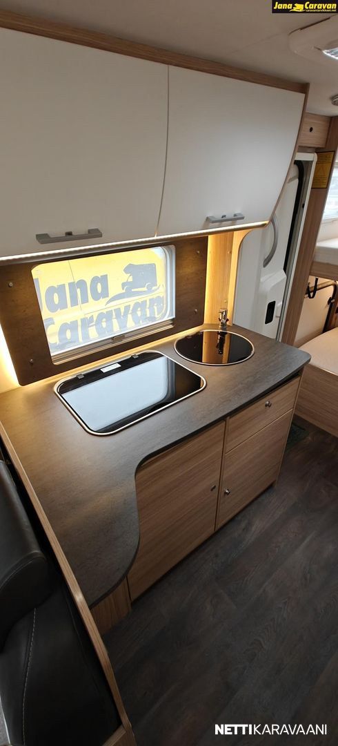 Ohjaustehostin, Sähkökäyttöiset ikkunat, ABS-jarrut, Airbag, Huoltokirja, Käynnistyksenesto, Luistonesto, Vakionopeudensäädin, Ajotietokone, Sähköpeilit, Ajonvakautusjärjestelmä, Turbo, Kasetti WC, Suihku, Lämminvesiboileri, Pyöräteline, Liesi, Jääkaappi, Pakastelokero, Kasettiverhot, Sähkörappu, Pesuallas, Lattialämmitys, Sähköpatruuna, Pysäköintikamera, Keskuslukitus: Kaukosäätöinen, Radio