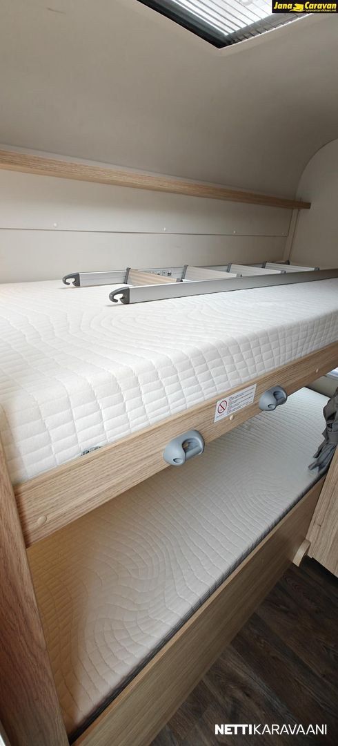 Alemman sängyn saa nostettua ylös, jolloin tavaratilan saa isoksi takatalliksi.