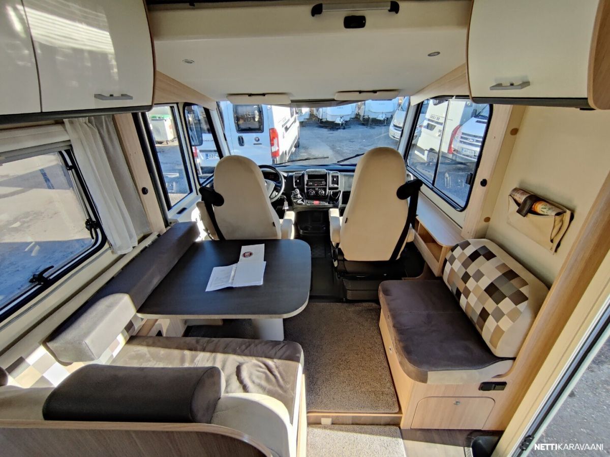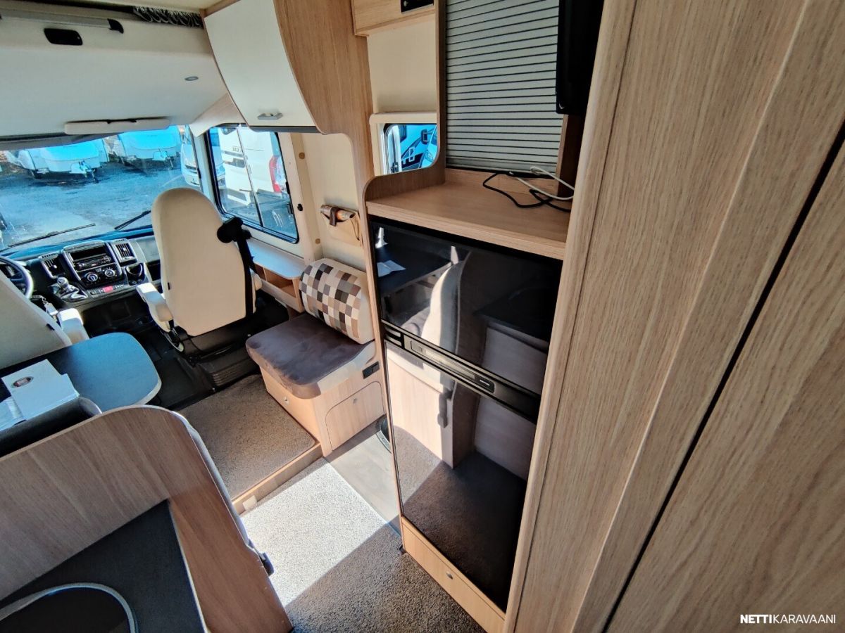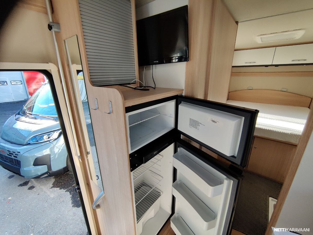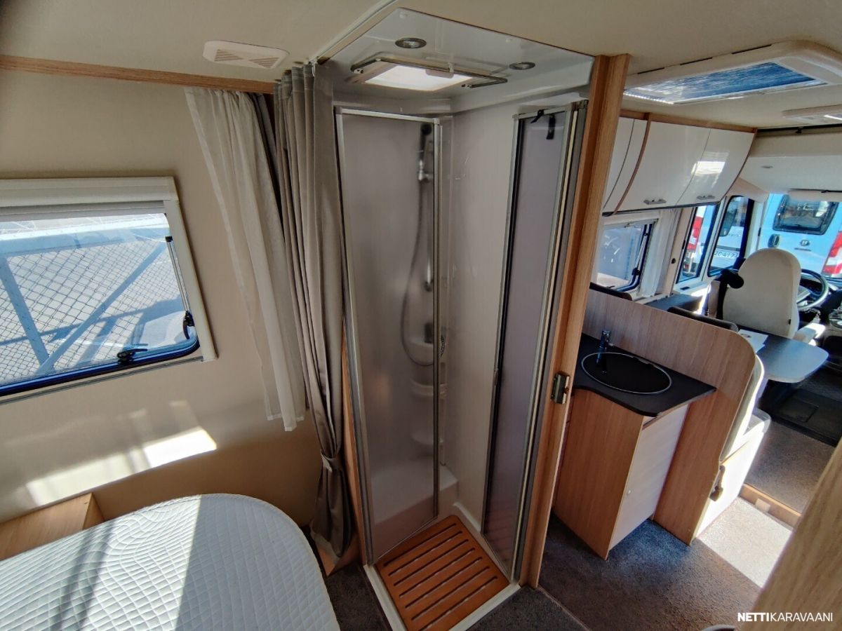 Siisti tilava auto Trumatic ilmakeskuslammtys kaasulla Tilava keskiparivuode Erilliset WC ja suihku jotka voi sulkea kiinni makuuhuoneen yhteyteen Alas laskettava lisä vuode Peruutus kamera Renkaat uudet juuri vaihdettu alle Nastarenkaat omilla vanteillaan Ja molemmat alumiini vanteilla Vetokoukku Markiisi Polkupyörä teline Iso jääkaappi ja erillinen pakastin lokero Tilava takatalli johon ovi molemmin puolin Jakohihna juuri vaihdettu 7/2025