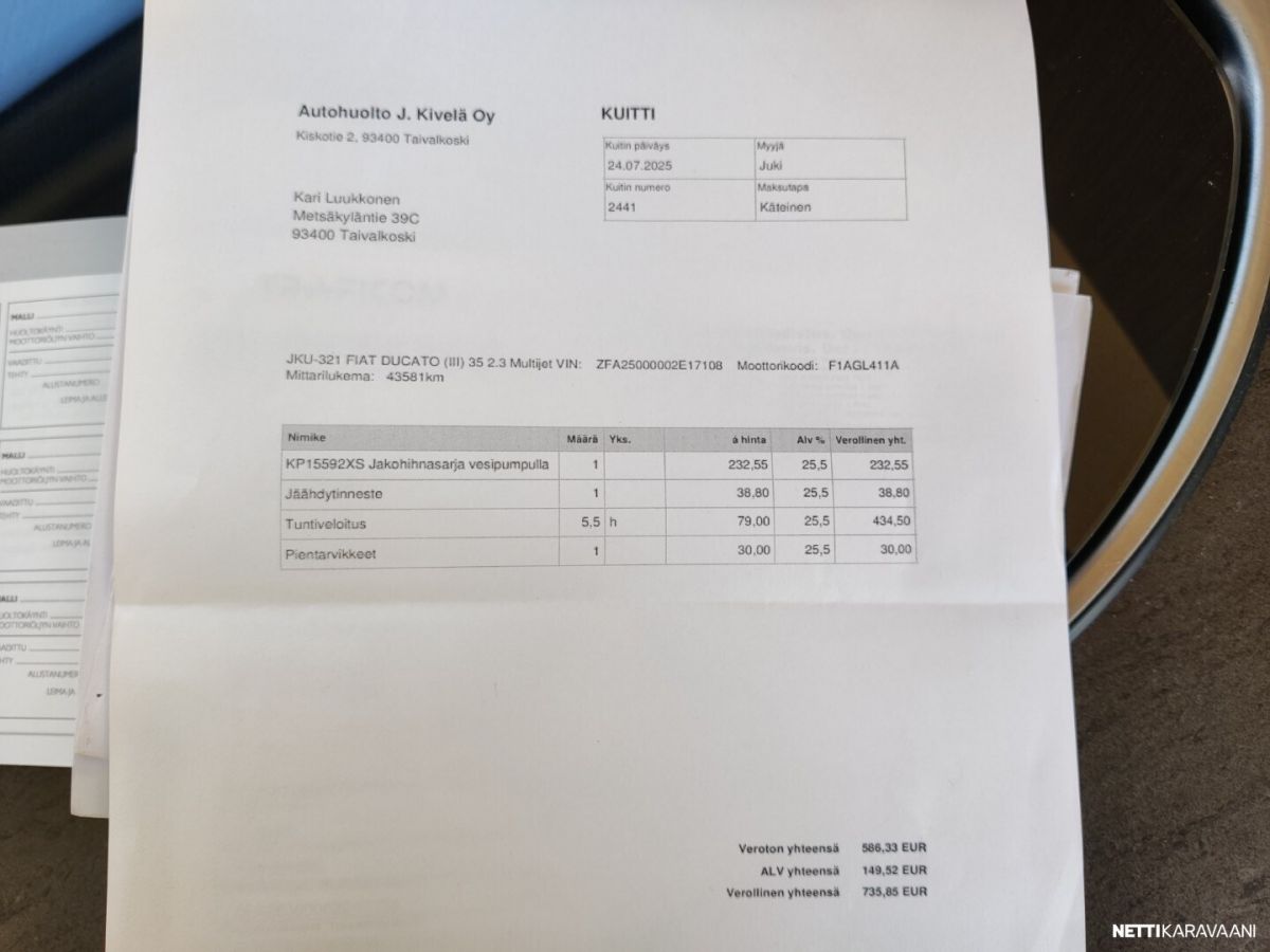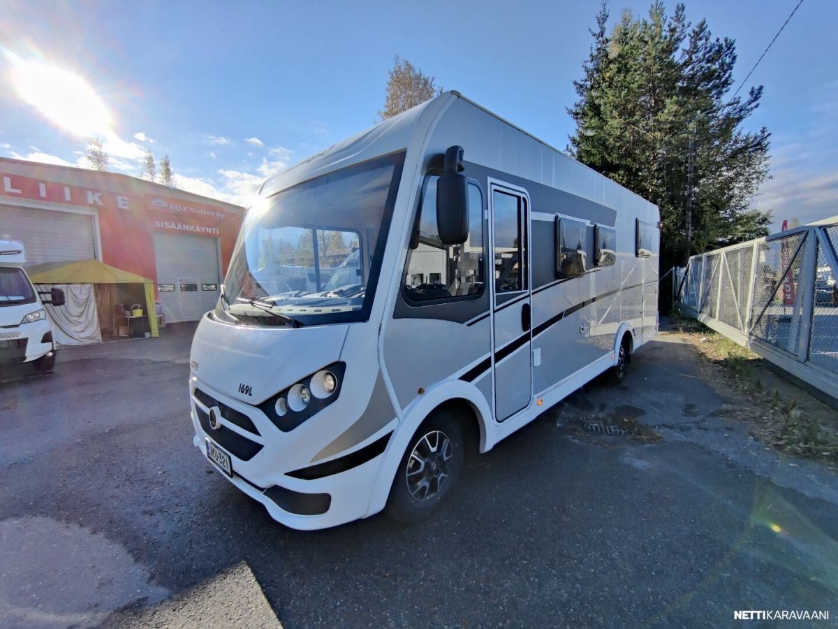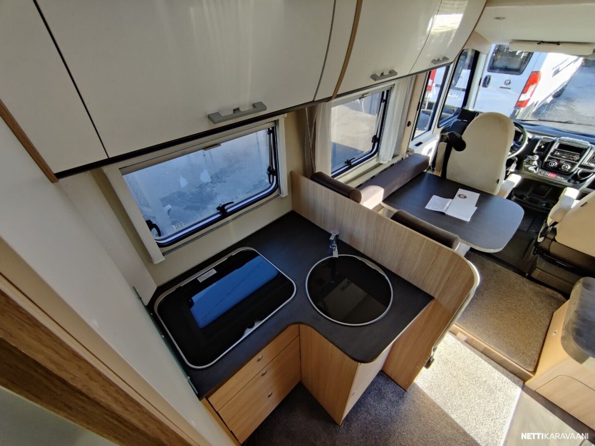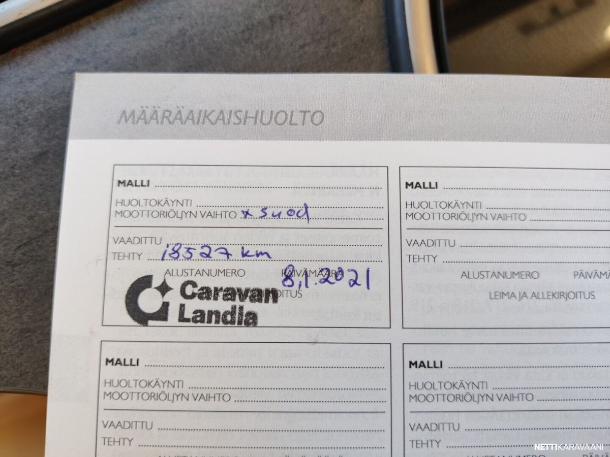 Siisti tilava auto Trumatic ilmakeskuslammtys kaasulla Tilava keskiparivuode Erilliset WC ja suihku jotka voi sulkea kiinni makuuhuoneen yhteyteen Alas laskettava lisä vuode Peruutus kamera Renkaat uudet juuri vaihdettu alle Nastarenkaat omilla vanteillaan Ja molemmat alumiini vanteilla Vetokoukku Markiisi Polkupyörä teline Iso jääkaappi ja erillinen pakastin lokero Tilava takatalli johon ovi molemmin puolin Jakohihna juuri vaihdettu 7/2025