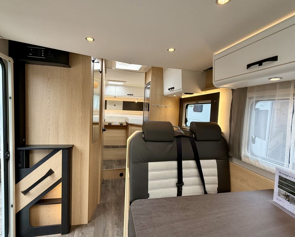 TULOSSA JOULUKUUSSA 2025, HUOM! KUVIEN AUTO VOI SISÄLTÄÄ LISÄVARUSTEITA JOITA EI AUTOSSA OLE, UUTUUS Sunlightilta alle 7m auto laskuvuoteella, Perusauto: 75.690eur, Fiat 140hv 8-vaihteinen automaatti 3.575eur, Laskuvuode kahdelle 1.790eur, Nordic-paketti 1.060eur (sis. Truma Combi 6E sähkölämmitys digitaalipaneelilla - Sähköinen lattialämmitys 230V - Eristetty harmaavesisäiliö), Erikoisvanteet, Eristetty harmaavesisäiliö, Ilmastointi man., Kasettiverhot, Lattialämmitys, Lämminvesiboileri, Suihku, Trumatic, Vak.nopeudensäädin