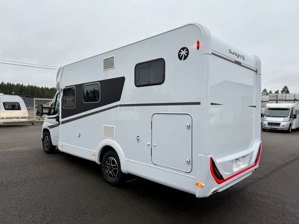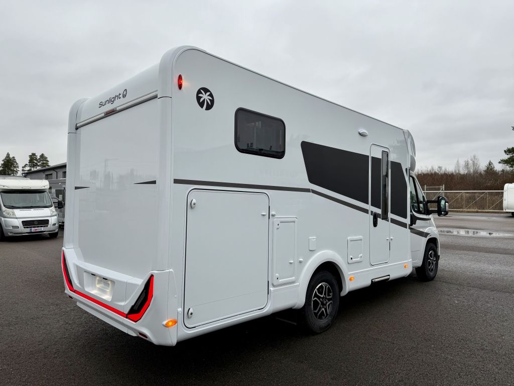 Ready to Roll kampanja kaikkiin 2026 Sunlight matkailuautoihin -1.500€ 17.5 asti!!!. Upea alle 7-metrinen Sunlight erillisvuoteilla ja takatallilla. Laskuvuode edessä istuinryhmän päällä on täysleveä ja soveltuu kahdelle aikuiselle tai lapselle. Erillisvuoteet yhdistettävissä. WC tila on monipuolinen joka toimii kätevästi myös suihkuna. Autossa valmiiksi asennettuna Continentalin kitkarenkaat ympärivuotista liikkumista varten eli ei tarvetta hankkia toisia renkaita, Adventure mallisarjassa perushinta sisältää: ohjaamon kattoikkunan - upotetut ikkunat - Adventure erikoisteippaukset - 2. luukku takatalliin - jääkaappi 137l/pakastelokero 15l - Korkeat takapuskurin muotokappaleet - BASIC PAKETIN (valoelementti takavalopaneelin keskellä - asunto-osan ovessa ikkuna - hyttysverkko-ovi ulko-ovessa - panoraama kattoikkuna - kirjaslasiset kattoluukut) - PAKETTI: MAALATTU ETUPUSKURI (maalattu etupuskuri - musta alasuoja - sumuvalot) - PAKETTI: 2-VÄRISET ALUMIINIVANTEET (2-väliset 16" alumiinivanteet - nahkainen ohjauspyörä ja vaihdekepin nuppi - ilmansuuttimet hopeasomistein (Techno Trim), , , Perusauto: 75.690eur, Tämän auton tehdaslisävarusteet:, Fiat 140hv 8-vaihteinen automaatti 3.575eur, Laskuvuode kahdelle 1.790eur, Nordic-paketti 1.060eur (sis. Truma Combi 6E lämmitys (kaasu 6kW/sähkö 1800W) digitaalipaneelilla - Sähköinen lattialämmitys 230V - Eristetty harmaavesisäiliö), Nykyajan ajoneuvot saattavat palvella montaa eri käyttäjää ja käyttötarkoitusta. Meillä on myös asennuspalvelu kaikkiin mahdollisiin varusteisiin mitä matkantekosi voi vaatia! Kysy tarjous!, ABS-jarrut, Erikoisvanteet, Eristetty harmaavesisäiliö, Ilmastointi man., Kasettiverhot, Lattialämmitys, Lämminvesiboileri, Suihku, Trumatic, Vak.nopeudensäädin