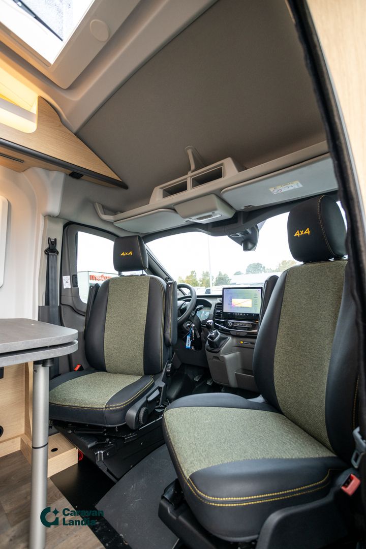 TÄHÄN AJONEUVOON 2,99 % KORKO + UUDEN VARUSTE-EDUT! - TÄHÄN AJONEUVOON 1500 € ERIKOISALENNUS! - TULOSSA! Upea nelivetoinen retkeilyauto, joka yhdistää mukavuuden ja toimintavarmuuden, ja se on valmis vastaamaan kaikkiin seikkailuihin! TULOSSA! Arkistokuvia, tarkasta värien ja varusteiden oikeellisuus myyjältä. Vakiovarusteet: Ford Transit 3.500 kg | 2,0l TDCi | 122 kW (165 hv) | EURO 6 | 6-vaihteinen manuaalivaihteisto | neliveto, Yellow Olive erikoisväri, Green Trek teippaukset, Verhoilu Adventure, Takaosan laajennus, Upotetut ikkunat, Takaovissa avattavat ikkunat (sis. rullaverhon), Takana yläkaapistot joka sivulla, Markiisi 3,5m (black), Alusta paketti (Ohjaamon ilmastointi, maalattu etupuskuri, sumuvalot, ajovaloissa staattiset kaarrevalot), Basic paketti (Panoraamakattoikkuna 70 x 50cm, suihkuvarusteet, pesutilan ikkuna, vaatetanko suihkutilassa, leveä asunto-osan ulkoaskelta, pöydänjatke istuinryhmään), Offroad- paketti ( 17'' Delta offroad renkaat, Jäähdyttimen säleikkö ''Trail''). Lisävarusteina autoon tilattu: Assistant-paketti Level 1 (Pysäköintiavustin edessä, Digitaalinen peruutuskamera, LED kattovalo), Green trail verhoilu, Bi-Xenon-ajovalot, joissa staattiset kaarrevalot ja LED-päiväajovalot, Trumatic Combi 6E lämmitys sähkökäyttömahdollisuudella ja digitaalinen ohjauspaneeli, Ohjaamon kaihdinverhot, Vuoteentekomahdollisuus istuinryhmään poikittain, Eristetty ja lämmitetty harmaavesisäiliö, Polkupyöräteline 2:lle pyörälle (musta), Kiinteä vetokoukku, sis. TSC (perävaunun vakautusjärjestelmä), 12V tv valmius ja tv teline., Alv-vähennyskelpoinen
