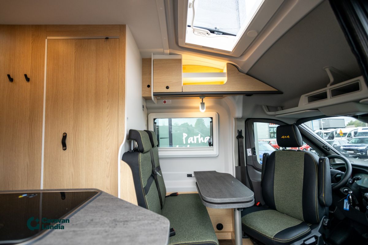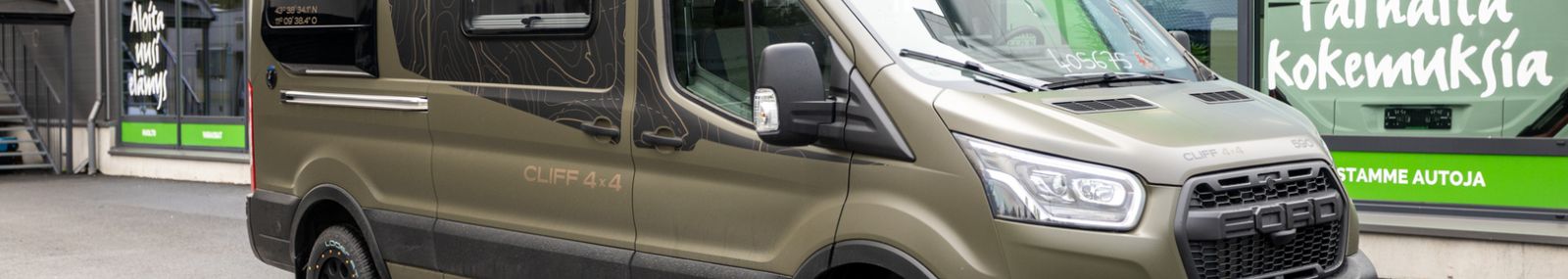 TULOSSA! Upea nelivetoinen retkeilyauto, joka yhdistää mukavuuden ja toimintavarmuuden, ja se on valmis vastaamaan kaikkiin seikkailuihin! - TÄHÄN AJONEUVOON 1,99 % RAHOITUSKORKO + UUDEN VARUSTE-EDUT! TULOSSA! Arkistokuvia, tarkasta värien ja varusteiden oikeellisuus myyjältä. Vakiovarusteet: Ford Transit 3.500 kg | 2,0l TDCi | 122 kW (165 hv) | EURO 6 | 6-vaihteinen manuaalivaihteisto | neliveto, Yellow Olive erikoisväri, Green Trek teippaukset, Verhoilu Adventure, Takaosan laajennus, Upotetut ikkunat, Takaovissa avattavat ikkunat (sis. rullaverhon), Takana yläkaapistot joka sivulla, Markiisi 3,5m (black), Alusta paketti (Ohjaamon ilmastointi, maalattu etupuskuri, sumuvalot, ajovaloissa staattiset kaarrevalot), Basic paketti (Panoraamakattoikkuna 70 x 50cm, suihkuvarusteet, pesutilan ikkuna, vaatetanko suihkutilassa, leveä asunto-osan ulkoaskelta, pöydänjatke istuinryhmään), Offroad- paketti ( 17'' Delta offroad renkaat, Jäähdyttimen säleikkö ''Trail''). Lisävarusteina autoon tilattu: Assistant-paketti Level 1 (Pysäköintiavustin edessä, Digitaalinen peruutuskamera, LED kattovalo), Bi-Xenon-ajovalot, joissa staattiset kaarrevalot ja LED-päiväajovalot, Trumatic Combi 6E lämmitys sähkökäyttömahdollisuudella, Puinen suihkuritilä, Ohjaamon kaihdinverhot, Vuoteentekomahdollisuus istuinryhmään poikittain, Eristetty ja lämmitetty harmaavesisäiliö, Polkupyöräteline 2:lle pyörälle (musta), Kiinteä vetokoukku, sis. TSC (perävaunun vakautusjärjestelmä), Alv-vähennyskelpoinen
