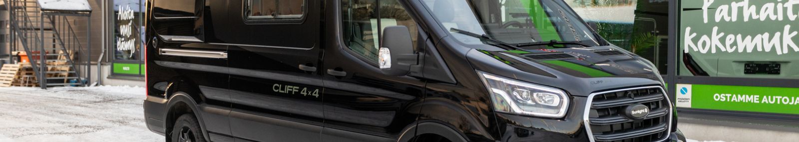 TÄHÄN AUTOON 1,99 % KORKOTARJOUS + 3000 € LISÄVARUSTEET KAUPAN PÄÄLLE - Upea nelivetoinen retkeilyauto, joka yhdistää mukavuuden ja toimintavarmuuden, ja se on valmis vastaamaan kaikkiin seikkailuihin! Vakiona autoon kuuluvat erikoisvarusteet: Ford Transit 3.500 kg | 2,0l TDCi | 122 kW (165 hv) | EURO 6 | 6-vaihteinen manuaalivaihteisto | neliveto, 16 alumiinivanteet, Takaosan laajennus, Takaovissa avattavat ikkunat (sis. rullaverhon), Adventure-erikoisteippaukset, Verhoilu Adventure, Takana yläkaapistot joka sivulla, Upotetut ikkunat, Markiisi 3,5 m (black), Panoraamakattoikkuna 70 x 50 cm, Suihkuvarusteet, Pesutilan ikkuna, Vaatetanko suihkutilassa, Leveä asunto-osan ulkoaskelma, Pöydänjatke istuinryhmään, Ohjaamon ilmastointi, sis. raitisilma- ja siitepölynsuodattimen, Maalattu etupuskuri, Sumuvalot, Ajovaloissa staattiset kaarrevalot Lisävarusteina autoon tilattu: Black metallic ulkoväri, Bi-Xenon-ajovalot, joissa staattiset kaarrevalot ja LED-päiväajovalot, Trumatic Combi 6E lämmitys sähkökäyttömahdollisuudella,, Puinen suihkuritilä, TV-valmius sekä taulutelevision teline, Ohjaamon kaihdinverhot, Vuoteentekomahdollisuus istuinryhmään poikittain, Eristetty ja lämmitetty harmaavesisäiliö, Polkupyöräteline 2:lle pyörälle (musta), Kiinteä vetokoukku, sis. TSC (perävaunun vakautusjärjestelmä), Alv-vähennyskelpoinen